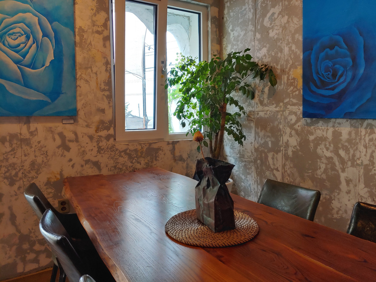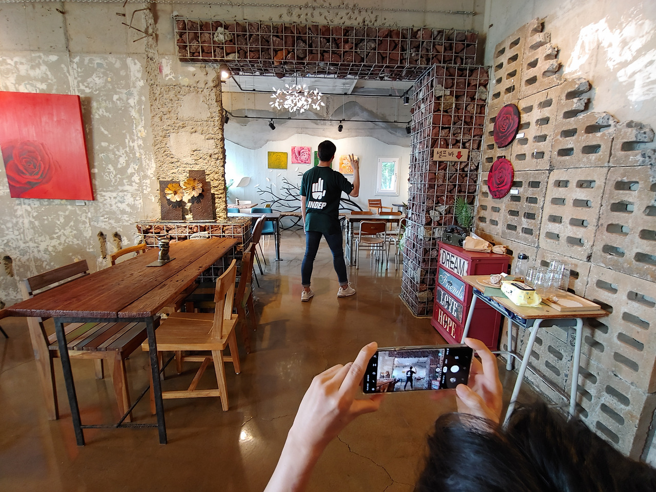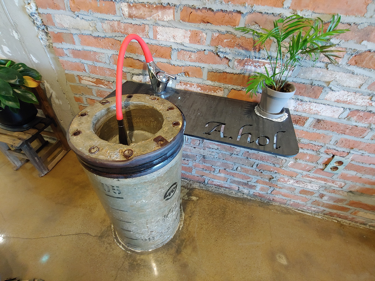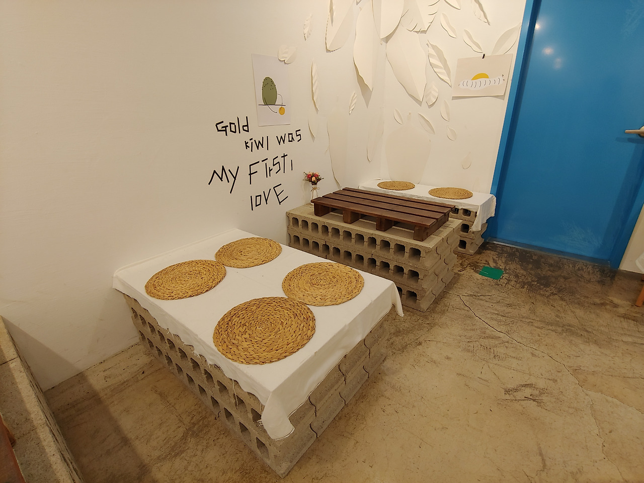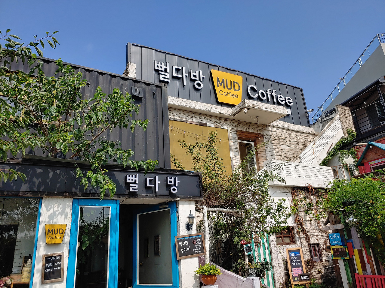 뻘다방 앞 업사이클링 카페 에이홀. 이곳엔 지중해 스타일에 리조트가 지어졌고 그 안에 있는 카페. 대부도 협동조합 이사님 중 한 분이 건축을 해서 건축 폐자재를 암 걸리지 않게(?) 처리하여 업사이클링하였다. 애초 목적은 갤러리였다며 과할 수 있는데 이사님 조카가 알바생으로 일하면서 젊은 감각도 더해져 지금의 공간이 되지 않았나 싶다. 함께 탐방 온 친구들이 인스타용 사진 찍는 모습을 구경했다. 평일이라 사람도 1도 없었고 애기들(?) 사진 찍는 거 구경. 재밌다. 키키키