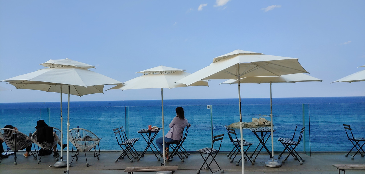 고성까지 진출한 감성 카페. 인더스트리얼 카페. 업사이클링 카페. 씨뷰 카페. 주말엔 사람이 많다던데 평일이라 손님이 달랑 10명 채도 안된다. 친절한 직원이 주말엔 사람으로 복작거리는데 오늘은 사람이 없으니 여기저기 둘러보고 사진도 찍으라며 직접 설명도 해준다. 빵집도 있고 이것저것 설비를 많이 해놨더라. 고성 바다는 사람이 많이 안 담가진(?) 바다라 그런지 정말 깨끗했고 빠져든다. 몇 년 전 지중해에서 보던 바다와 비슷하다. 강원도는 태풍이 지나간 가을바다가 예쁘다던데 태풍도 일찍 지나갔고 날씨 운이 좋은지 바다 빛깔이 더욱 아름다웠다. 내 피부가 햇살에 타들어가 따가워도 좋다. 스트레스야 잡생각아 바닷속으로 다 빠져나가라!