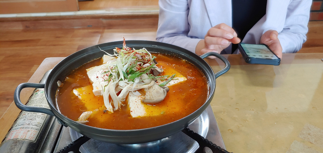 하필 가려던 순두부집이 수요일이 휴무라 바로 옆 무한도전에 나온 할머니가 파시는 순두부 집으로 발걸음을 옮겼다. 그곳도 유명한 곳인지라 줄이 길었지만 애매한 시간 때라 금방 들어가 먹었다. 이곳은 시골 밑반찬과 칼칼하게 깔끔한 두부찌개가 완전 내 입맛에 찰떡! 흡입! 원샷!