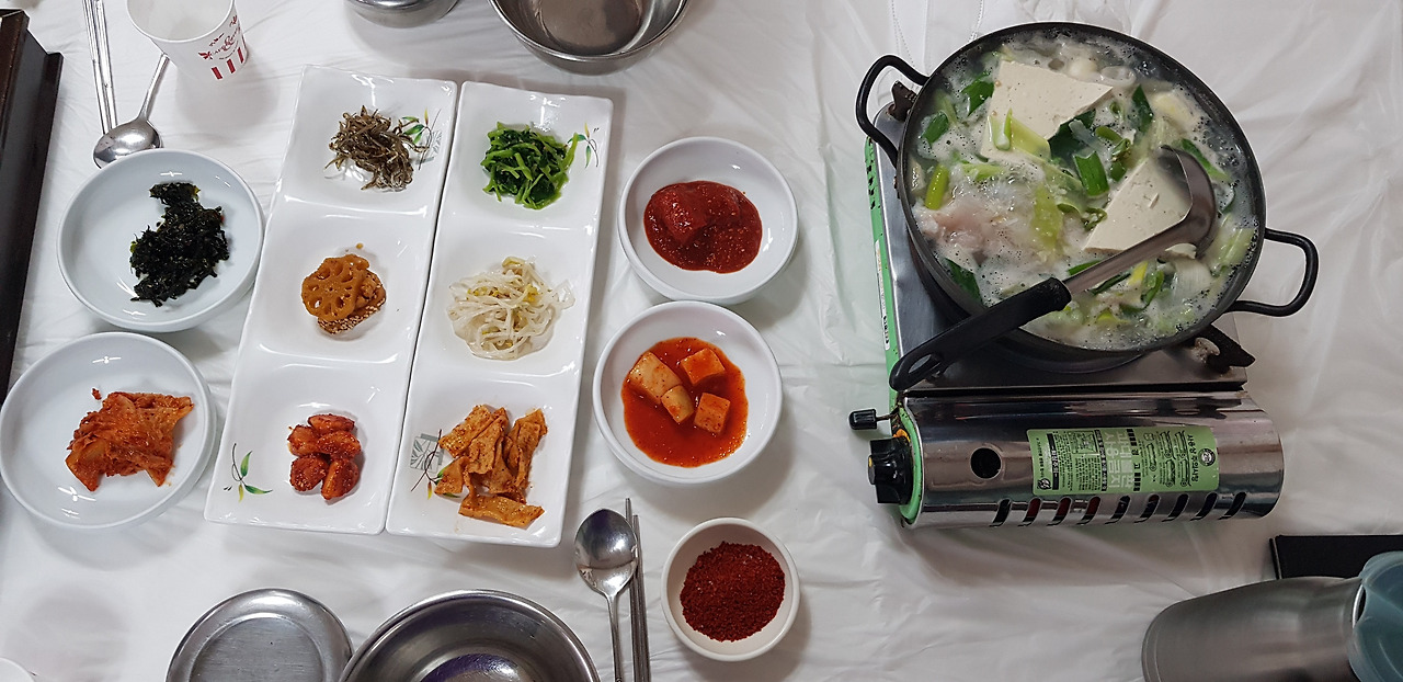 썬크루즈 가는 날... 비가 내리기 시작했다. 호텔에서 일출 봐야 하는데 또 비라니. 이것 참 난감하다. 가기 전 점심을 챙겨 먹으려 곰치국을 챙겨 먹었다. 처음 먹어보는 음식인데 유명한 음식이란다. 겨울에 먹을 수 있고 잘 안 잡혀서 비싸단다. 흐물흐물하고 물컹한 생선에 하얀 국물이 진짜 시원하고 속이 편안한 음식이었다. 꺽.