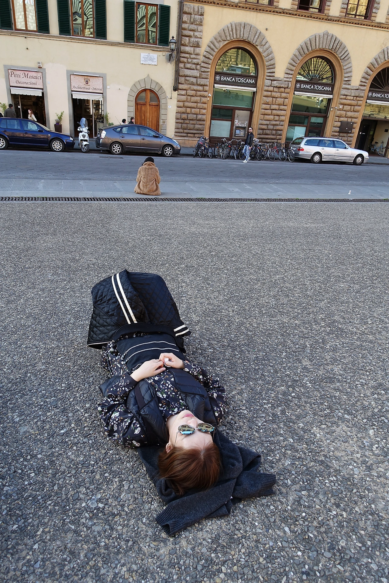 계단운동 후 저질체력 충전을 위해 피티 궁전 앞에서 노숙을 하였다. 행복한 노숙 그리고 낮잠.