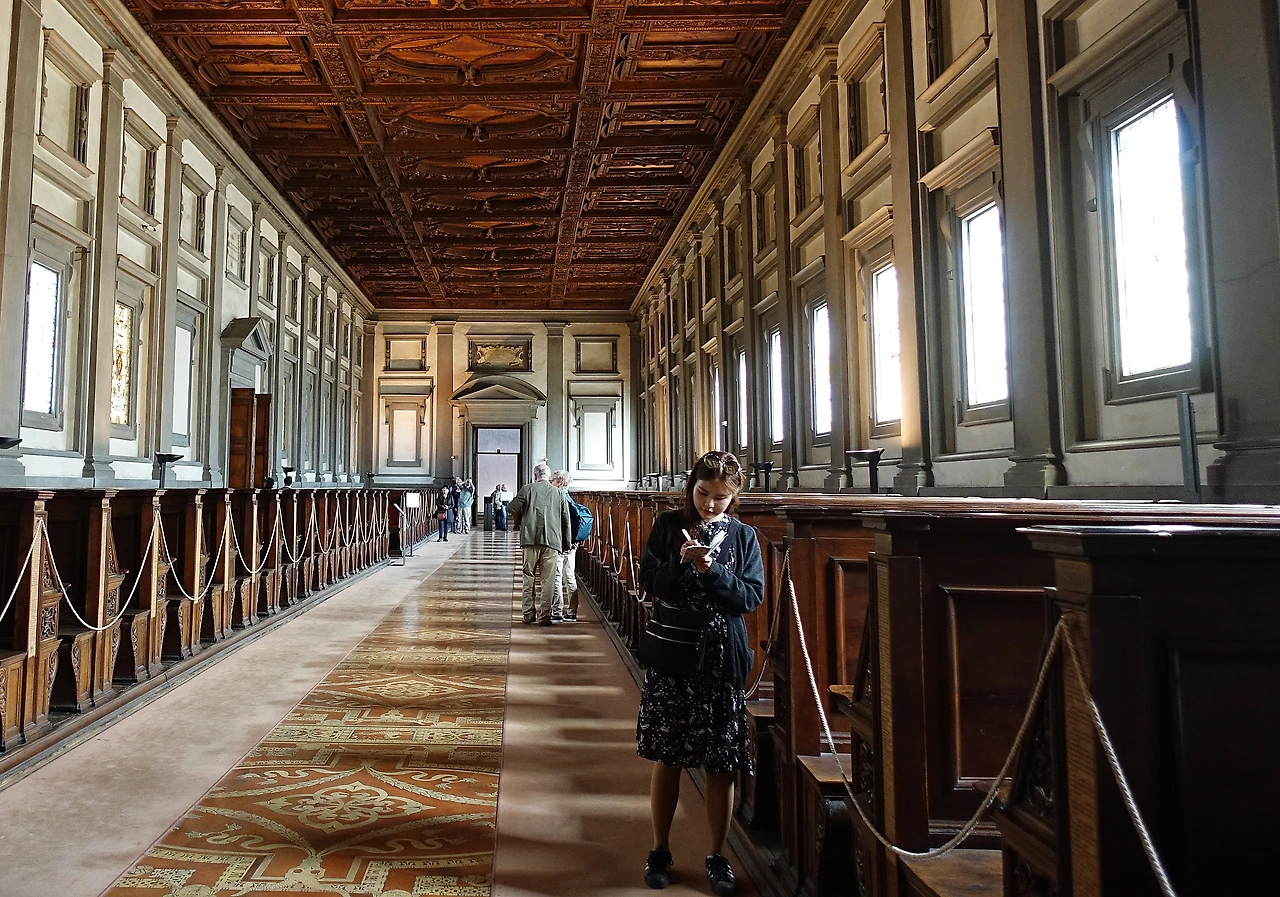 이튿날, 천재들이 공부했던 기운을 느끼기 위해 라우렌치아나 도서관에 들렀다. 별거 아닐 수 있는 도서관이지만 그냥 도서관을 좋아해서 좋았다. 사람들이 무언갈 이루기 위해 집중하는 분위기, 혹은 조용한데서 쉬어가는 쉼(주로 나의 모습)의 도서관이 나는 좋다. 계단의 상징적 의미도 좋고. 어두침침 한걸음 한걸음 올라가다 보면 넓고 트인 세상이 보일 거라는데......열심히 공부하는 척이라도 했다.