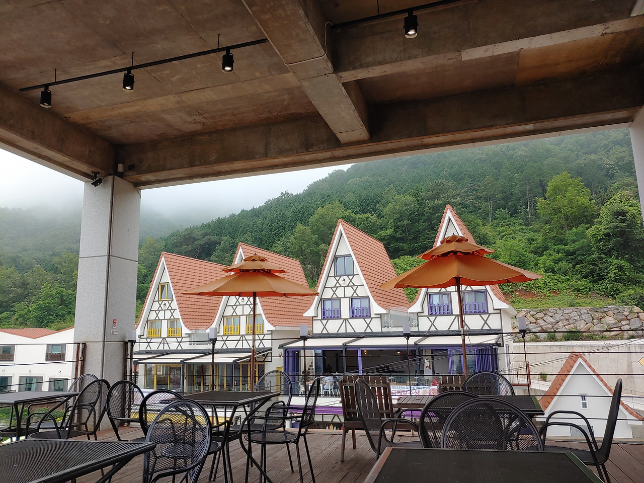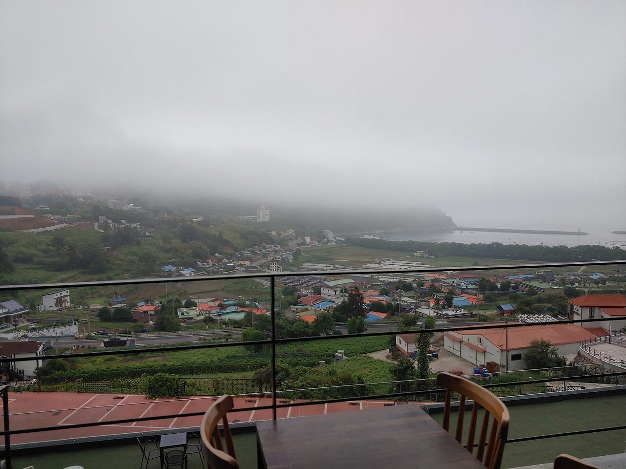 나는 남해에 3번째 왔고 3번째 다 장마다. 남해는 나에게 맑은 하늘을 보인적이 없다. 언제나 산신령이 나오는 흐린 날과 폭우만 보여줬다. 남해 주민들은 남해 날씨가 이렇지 않은데 너만 오면 비가 온다고 나에게 아메온나라고 부른다. 보리암을 맑을 때 봐야 멀리 산세와 바다가 보인다는데 나는 한 치 앞도 보이지 않는 보리암만 보았고 이번에도 포기한 마음으로 독일마을에 쿤스트라운지 카페에서 커피를 마시며 비나 쳐다봤다.