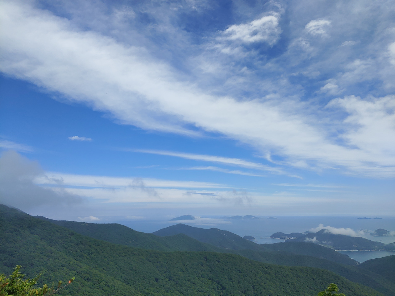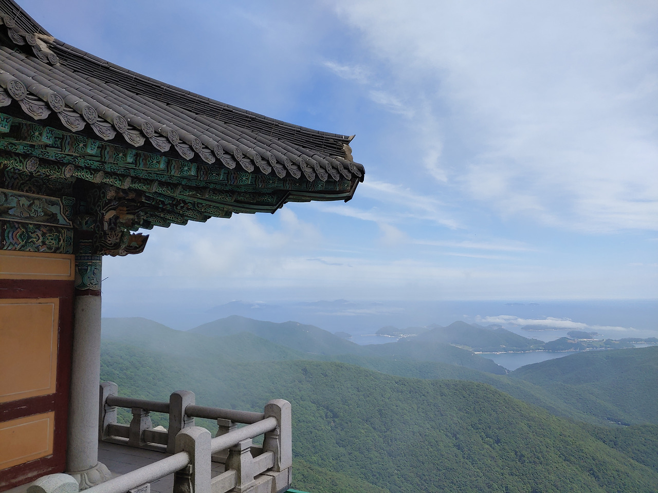 금산의 산과 바다가 눈 안에 꽉 찬다. 트인 풍광을 보며 최대한 속세 멀어지려 노력했으며 근심을 내려놓으려고 애썼다. 그리고... 다가온다 다가온다 구름 is coming.