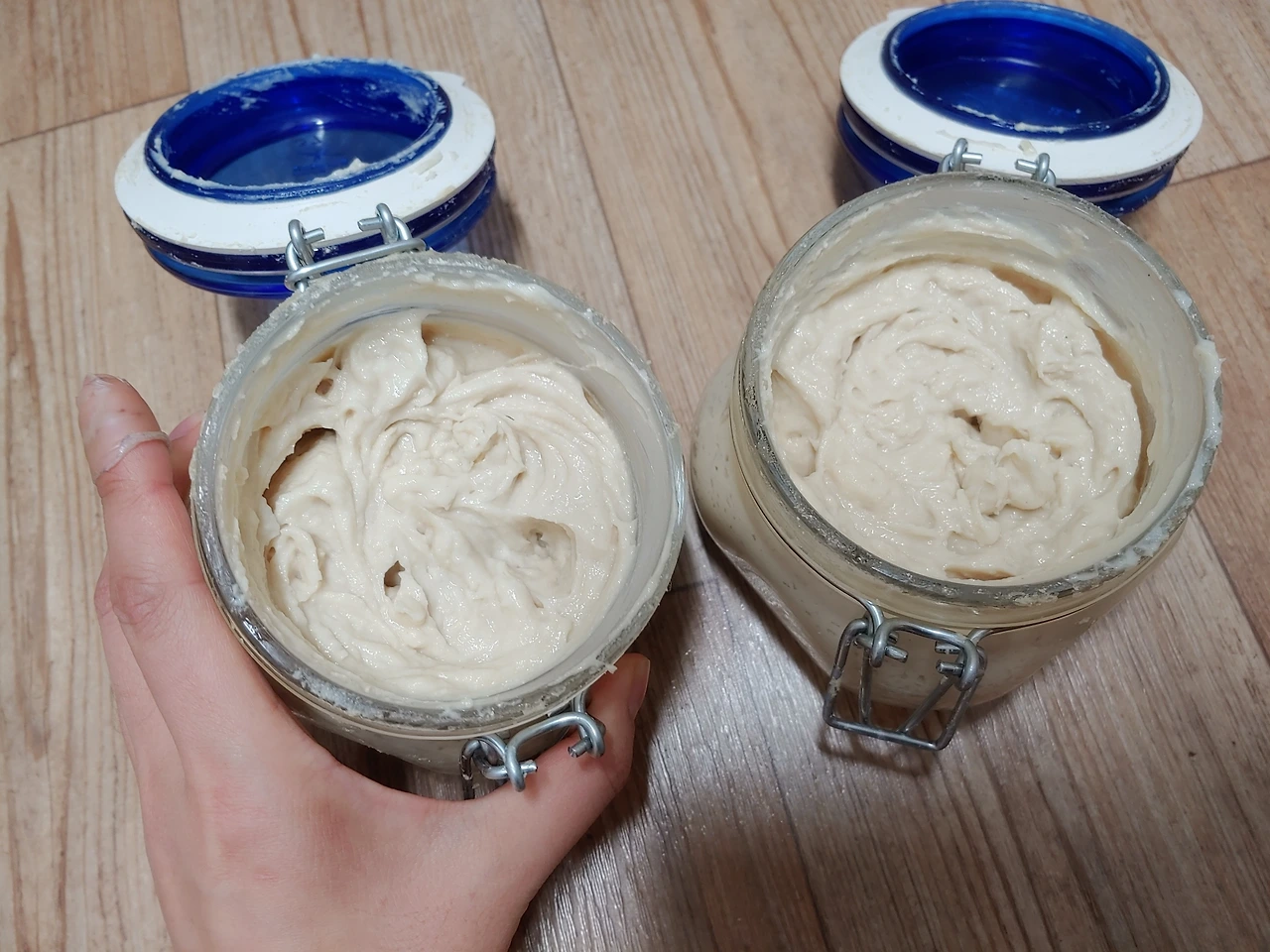 효모 종류와 전통주에 대한 설명도 해주셨지만 지금 기억이 안 난다. 술은 다 만들고 나면 끈적끈적한 형태의 요구르트보다는 질긴 덩어리가 완성이 된다. 이것을 통에 담아 매일 아침저녁으로 저어주고 1주일 뒤면 이화주 완성! 우리의 술은 적당히 시고 단 떠먹는 막걸리 맛이 되었다.