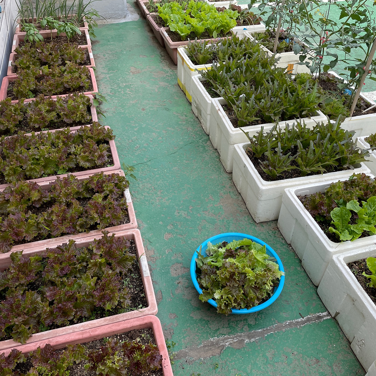 올해는 이 건물에서 옥상 밭이 유행이 되었는데 2층 요양보호사 선생님들이 합세하면서 본격 미세 플라스틱 옥상텃밭이 시작되었다. 심지어 요양보호사 선생님들은 대부분 조선족 분들인데 고향에서 농사를 지으셔서 미세 텃밭은 쉽게 가꾸신다. 나 같은 농부 인척 하는 찌끄레기에게 훈수도 많이 주시는데 매우 도움이 되었다. 예를 들면 잡초와 잡초 아닌 것의 구분, 상추는 뜯을 때 한 번에 삭발로 뜯어야 건강한 잎이 난다던지 토마토나 고추 곁가지는 다 뜯어라던지 나는 애초에 이런 상식 없이 잡초 같은 허브를 키우니 뭘 알겠는가. 하지만 저런 훈수 전 말보다 개 빠르게 손이 나아가 곁가지와 잡초는 다 뽑아놓으신다. 그래서 내가 할 건 없다. 개이득!