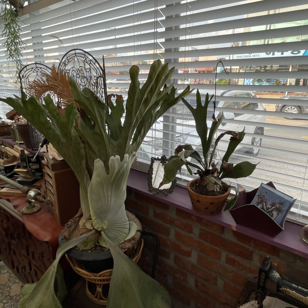 어딜 찍어도 사진이 잘 나온다. 틈틈이 보이는 박쥐란들. 대부도엔 감성은 많지만 이렇게 취향이 가득한 공간은 오랜만이었다. 취향이 넘치면 정신없을 수 있는데 정리가 잘 되어있고 조화롭다. 강아지들이 귀엽게 돌아다니고 에너지가 넘쳐서 좋았다. 대부도에 온다면 항상 이 카페는 들러야지. 너무나 취향 저격인 가게가 생겨서 좋다.