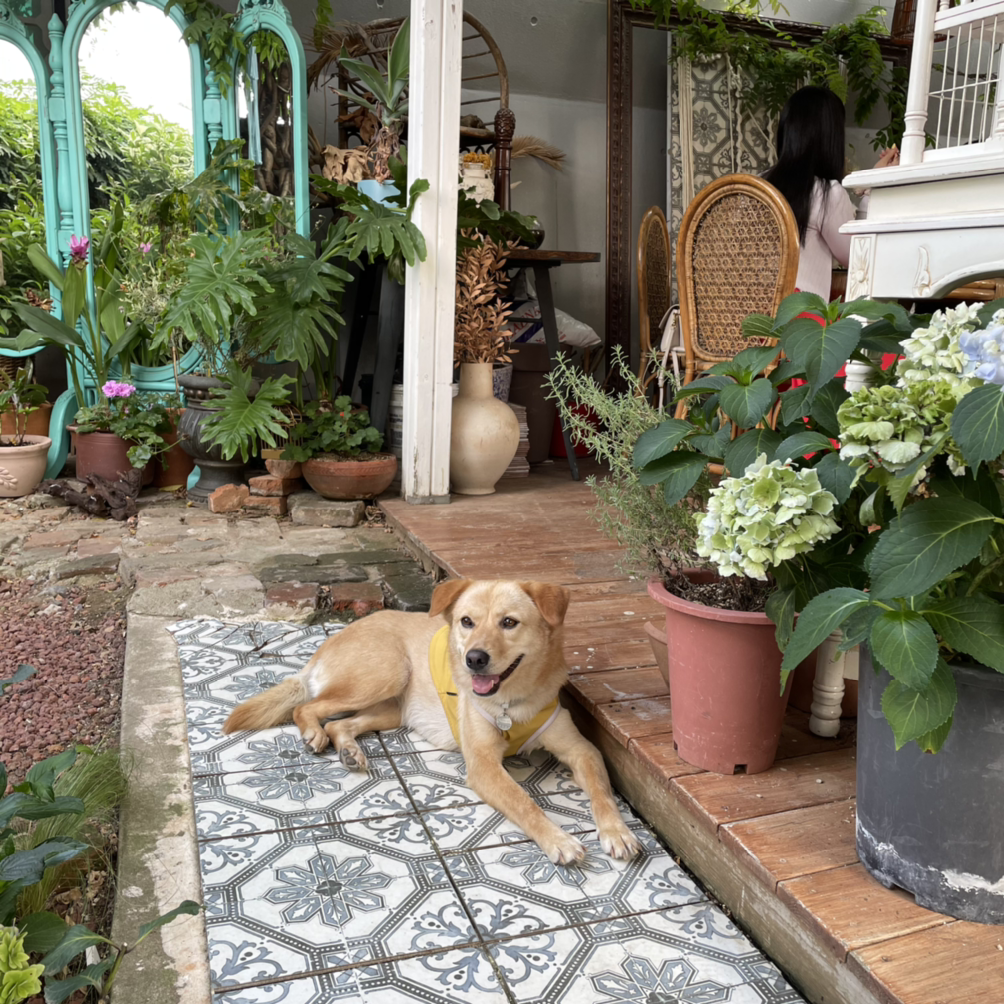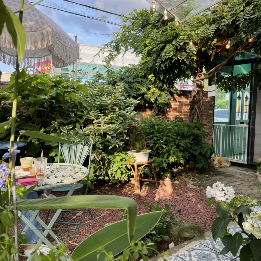 함께 간 푸들 주인님이 내가 좋아할 만한 곳이라며 나를 식덕식덕한 곳으로 데려갔다. 강아지가 동반이 가능한 카페인데 정원에서 중형견 두 마리를 키우고 계셨다. 박쥐란에 진심이셨고 존경스러운 10년 차 식집사였다. 야외 정원엔 수국을 심고 등나무를 키워서 햇빛가리개를 만드셨다. 원래 직업은 그림 그리는 아티스트신데 토, 일, 월만 카페를 운영하시고 나머지는 디저트 만들고 아티스트 활동하시고 개도 키우고 고양이 키우신단다. 존경합니다. 식집사 + 개집사 + 냥집사.