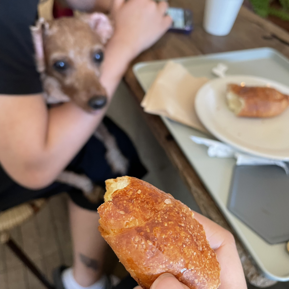 낮잠을 자고 카페인 충전 위해 들른 카페엔 고양이 알바생이 있었다. 고양이 알바생 일을 참 잘한다. 덕분에 소금빵을 3개나 사 먹었다.