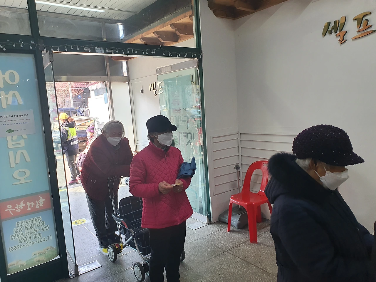 월피동 공유냉장고는 매일 평일(법정공휴일 제외) 2시 반에서 4시 반까지 이루어진다. 2시 반에 가면 이렇게 선착순으로 번호표를 나누어주는데 와 할머니들이 진짜 많다. 1시부터 와서 기다리는 분도 있다고 한다. 그렇다고 해서 번호표를 미리 주진 않는다. 무조건 2시 반부터 번호표 배포. 하지만 미리 온 사람들이 많고 하루에 인원수 제한으로 나눠주기 때문에 금방 마감이 되니 일찍 가긴 해야 할 듯싶다. 나도 두시부터 가긴 했음.