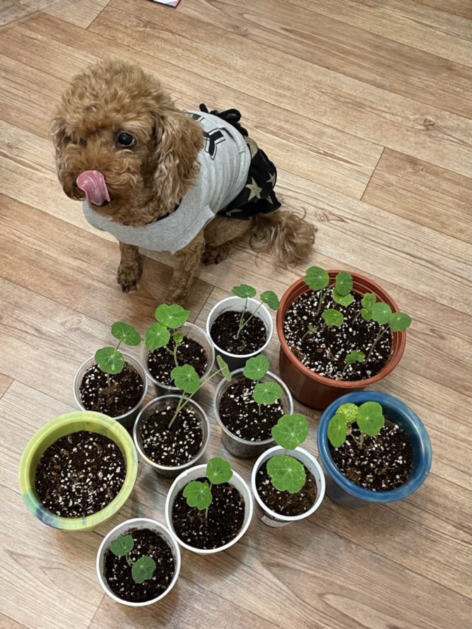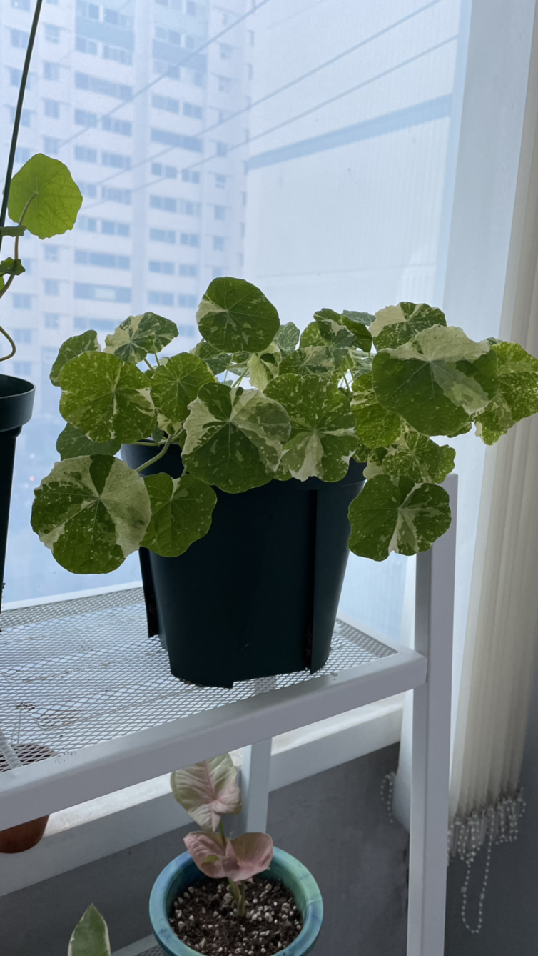 4월 10일. 파종한지 2달 가까이 되는데 꽃은 안 피고 잎만 무성하게 자랐다. 파종을 과하게 해서 집이 한련화 밭이 될뻔해 식물 친구들에게 나눠주고 당근에 저렴하게 팔아 자리를 줄여나갔다.