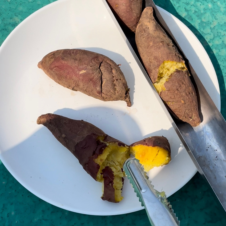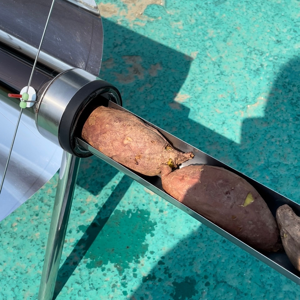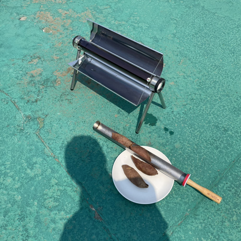12시에 고구마를 통에 넣고 해가 잘 드는 옥상에 올려놓았다. 삼십분 뒤 고구마를 뒤집어야 하는데 꽤나 뜨거워져 집게를 들고 가서 뒤집어주었다. 1시간이면 구워진다는 고구마는 최종 두 시간이 걸렸다. 전기도 안 쓰고 햇빛에 구워지는 고구마라니 너무 신나는 일이고 신기하고 너무 맛있다. 고구마는 꽤나 촉촉하게 구워졌다. 비교해보려고 에어프라이기 구운 거랑 같이 먹었는데 둘 다 맛있었다(?) 하지만 에너지 효율로는 태양열이 최고! 여름도 다가오고 기후위기로 태양열이 뜨거워진 지금 시기에 맞는 대안 요리방법이 되겠다는 생각도 들었고 전기도 쪼끔 절약할 수 있었다. 가격은 15만원이래서 인터넷 가격보다 싸길래 구매를 고려중이다. 다음엔 계란을 구워봐야겠다.