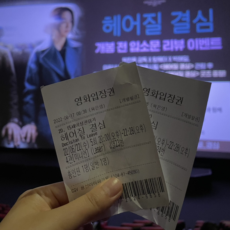 박찬욱 감독의 새 영화 헤어질 결심을 보고 왔다. 시사회에 당첨되어 용산 아이파크몰 CGV에서 관람함.