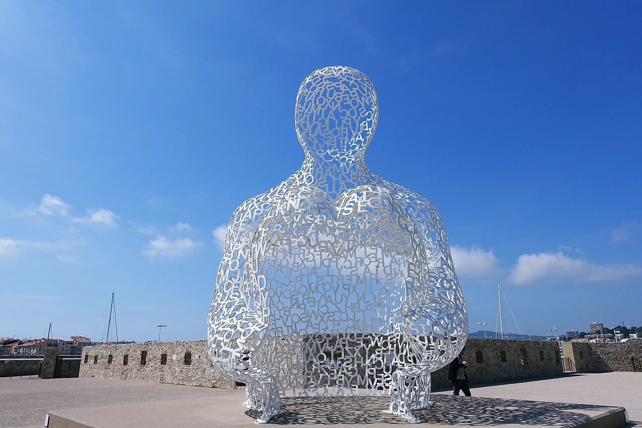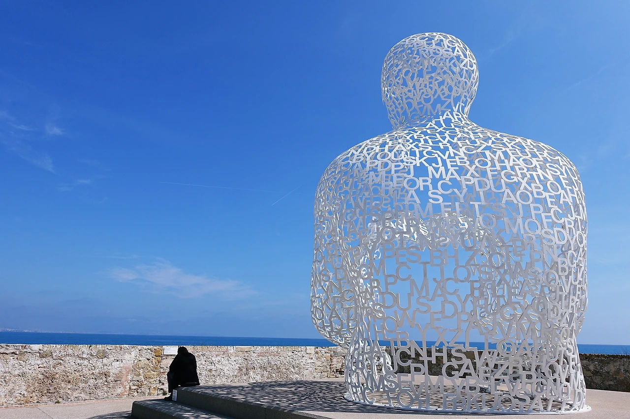 스페인 작가가 사람들의 편지 내용을 취합하여 만든 조각상 Le Nomade이다. 나는 쭈그려 앉아있다. 얼굴이 없어 말을 하지 못한다. 해야 할 말은 몸으로 한다. 몸에서 알파벳이 분사된다. 사실 나는 쭈그린 것이 아니다. 바다를 보며 깊게 생각 중이다. 라며 조형물 빙의도 하고 눈에 파란색을 가득 채우며 오랜 시간 이곳에 앉아있었다.