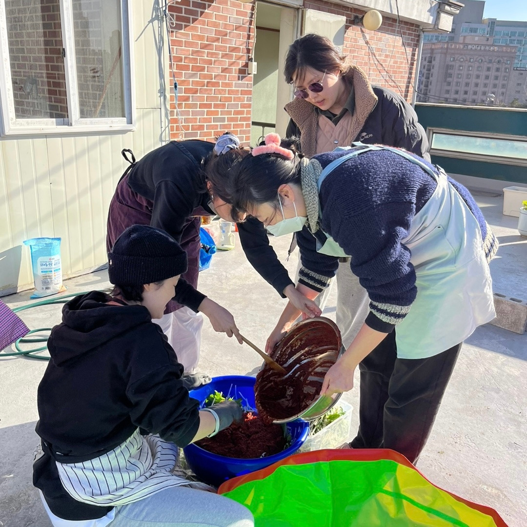 사실 나는 김장을 하고 싶지 않았다. 집에서 10년 가까이 엄마와 김장을 직접 하고 있고 이게 얼마나 힘든 일인지 손이 많이 가는지를 알고 있어서 더 하기 싫었다. 다행인지 나 빼고 다들 즐겁게 김장을 하더라고. 나는 모른 척 뒤로 빠져있으려 했다. 근데 그럴 수 없었다. 날이 추워서 빨리빨리 해치워버리고 싶었다. 결국 무도 바락바락 닦고 쪽파도 다듬고 진딧물이 잔뜩 묻은 배추도 씻고 배추 속도 넣고 설거지도 쫌 하고 내 계획보다 많은 일을 했다!! 김장과 함께 먹겠다고 야채 전도 부치고 두부도 삶고 뒷정리까지 모두가 추운 날 엄청 고생했다.