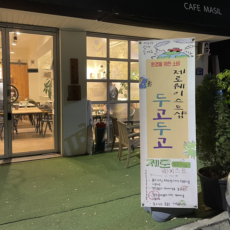 사회적경제 청년 서포터즈 활동으로 제로웨이스트를 실천하는 동네가 가까이 있다고 소개하고 싶어 방문한 안산시 일동의 협동조합 카페 마실. 마실은 일동에서 공동체 활동하는 분들이 따로 협동조합을 만들어 안산 최초의 제로웨이스트샵인 두고두고와 카페 마실을 함께 운영하신다.