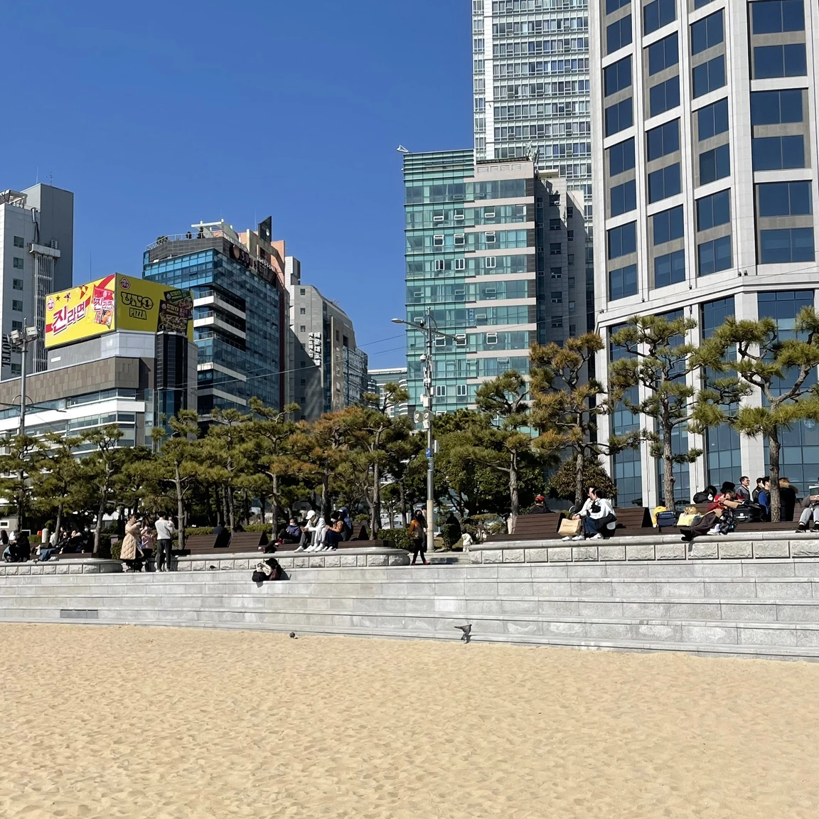 그렇게 시간 꽉꽉 채워 퇴실한 후 날씨가 너무도 좋아서 아침밥도 거르고 따뜻한 소이라테 한 잔을 사서 해운대 바다를 감상했다. 구름 없이 맑은 날, 비록 겨울의 바다라 바람 싸대기는 있지만 햇살이 이미 봄이라 뜨겁고 따뜻했다. 아까 스파와 같은 느낌이 난다. 머리는 시원하고(바람 귀싸대기) 몸은 햇살 받아 따뜻하고 정수리에 박힌 해 때문에 바다가 반짝인다. 해운대 해변 진짜 감동적이게 예쁘다.