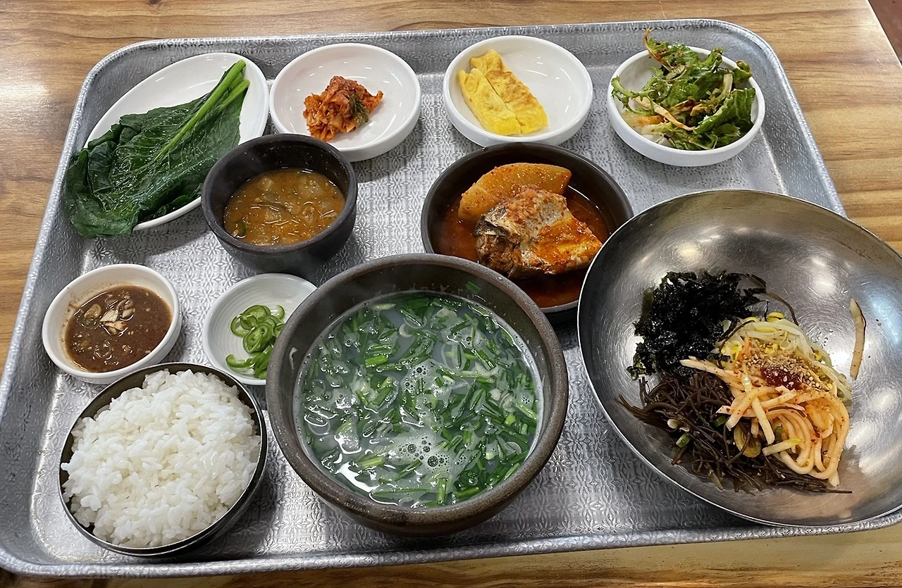 부산에서 세 번째 날, 광안리에서 머문 B&B 숙소 컨디션이 별로였고 숙취도 심해 얼른 퇴실을 하고 할매재첩국에서 재첩 한 상을 시켜 아점을 먹었다. 보라언니가 찐 맛집이라며 추천해 준 곳인데 으르신부터 애들까지 핫플레이스였다. 재첩국은 숙취에 최고였고 반찬도 깔끔하게 나온다. 개인적 취향으론 쌈과 강된장, 고등어 조합이 개 꿀맛이었다.