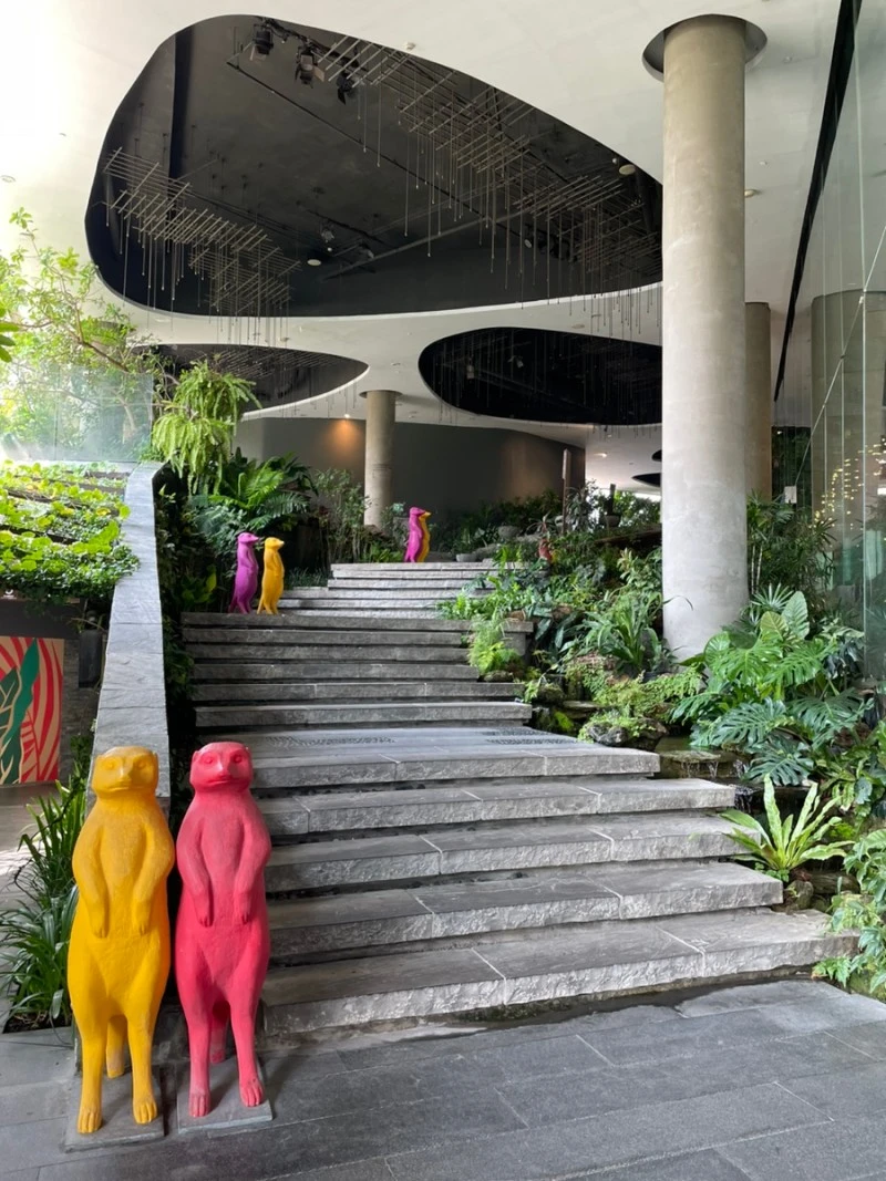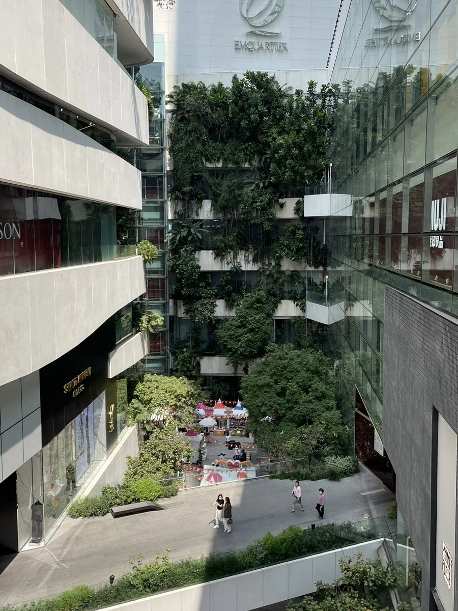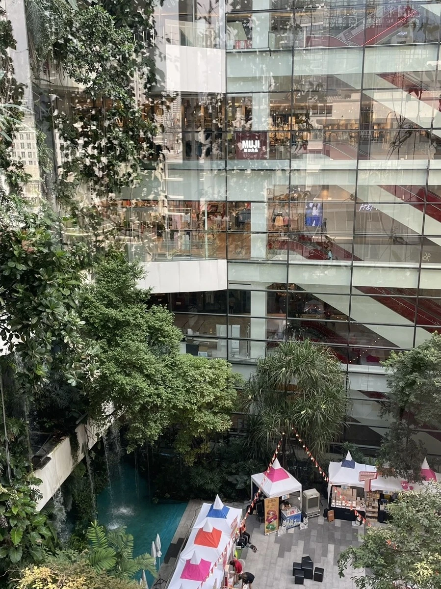 정원이 있는 곳은 엠쿼티어 쇼핑몰 6층이다. 정원뿐 아니라 플랜테리어를 잘 한 쇼핑몰로도 유명하다. 층마다 거대 식물이 무럭무럭 있고 밖으로도 보이게 큰 식물들 심어놨다. 한국의 플랜테리어와 식물 상태나 크기가 비교가 안된다. 역시 동남아의 식물은 대단하다.