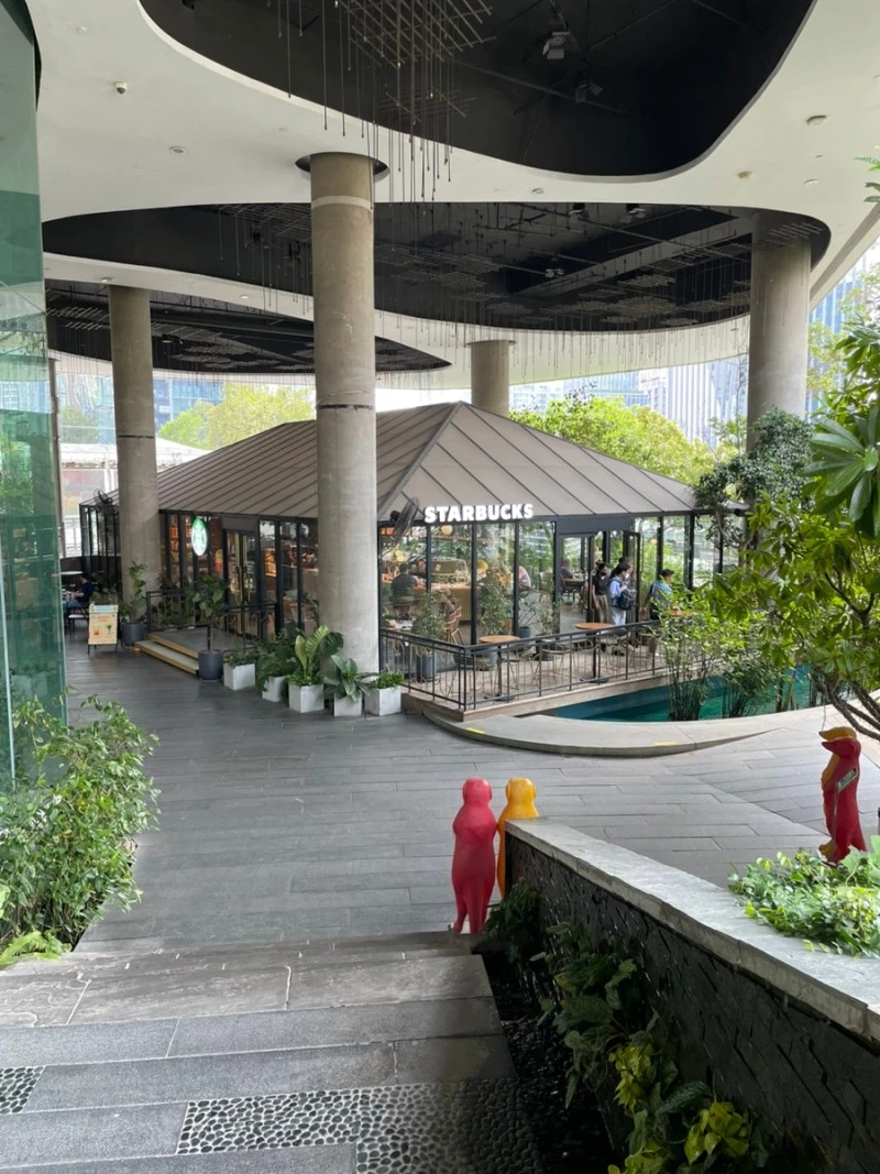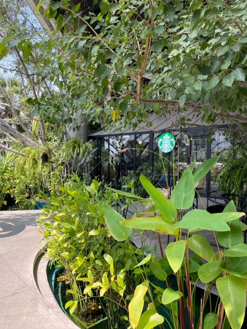 그렇게 쇼핑몰을 구경했으나 정작 물의 정원을 찾지 못해 다시 일층으로 돌아가 정원을 찾았다. 건물이 두동으로 나눠있어 물의 정원이 있는 동을 찾아가야 했다. 엘리베이터도 고층용과 저층 용이 있었고 g층 1층 b층 헷갈리게 되어있다. 한국식으로 3층이 1층이라 방향치에겐 대혼돈이었다. 어찌어찌 눈치껏 찾아간 물의 정원. 식물러인 나에겐 맘에 쏙 드는 곳이었다. 온실 모양 스벅이 있고 외국인 관광객은 여기 다 모여 있었다. 한국에서 비싼 식물인데 잡초처럼 심어져 있는 식물이 신기했고 뽑아가고 싶었다.