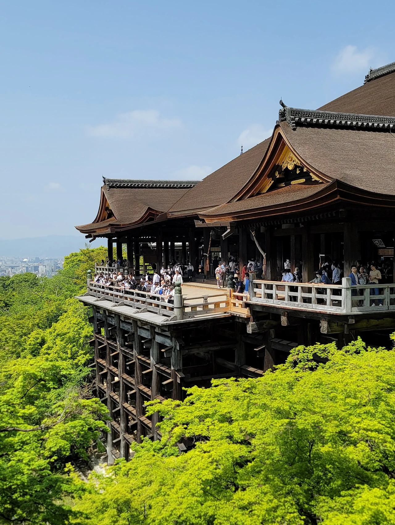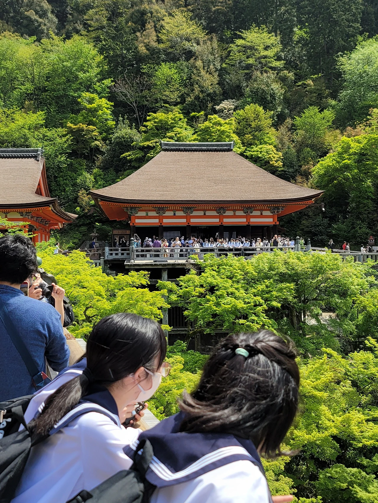 청수사엔 수학여행객이 바글바글. 오랜만에 온 청수사는 공사가 끝난 뒤였고 녹음이 우거져있었다.