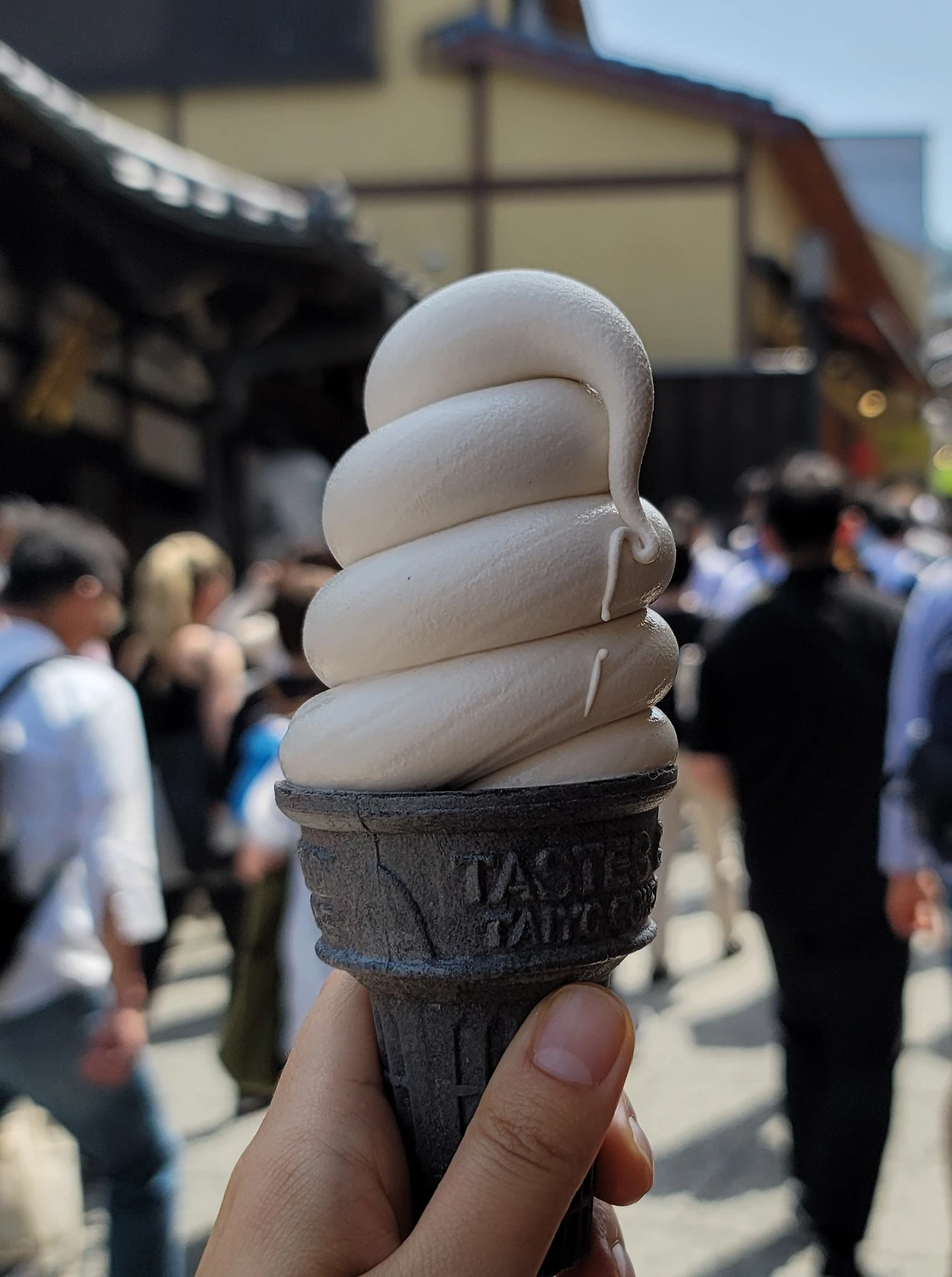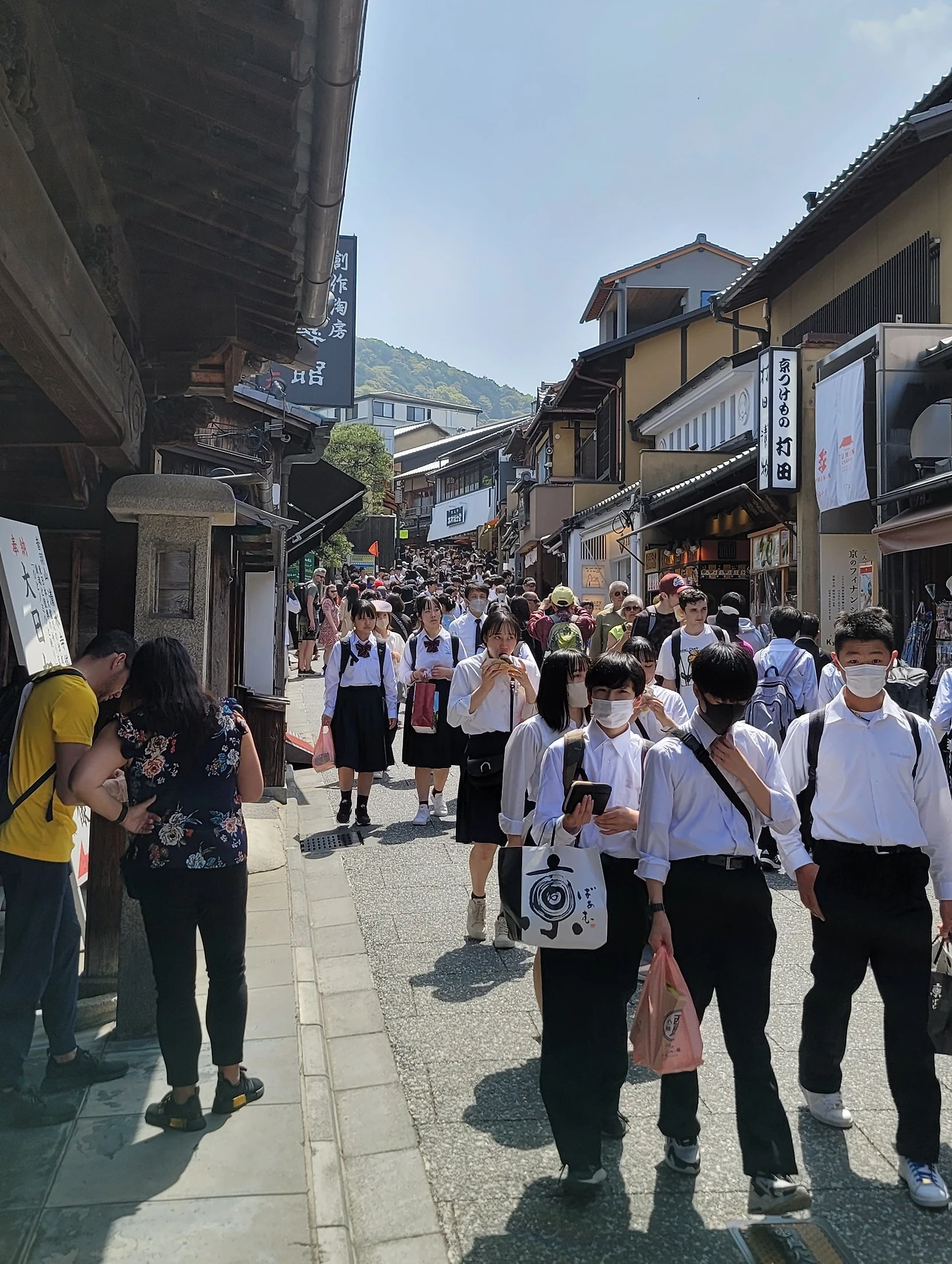 산넨자카 언덕길을 올라가는데 일본 중딩들이 수학여행 왔는지 우르르 내려온다. 올라가는 길에 구운밤맛의 아이스크림도 먹었다. 오백엔(오천 원)이나 하는데 생각보다 양이 많고 맛있지만 너무 달아서 이 이후 달달한 아이스크림 헤이테가 되었다.