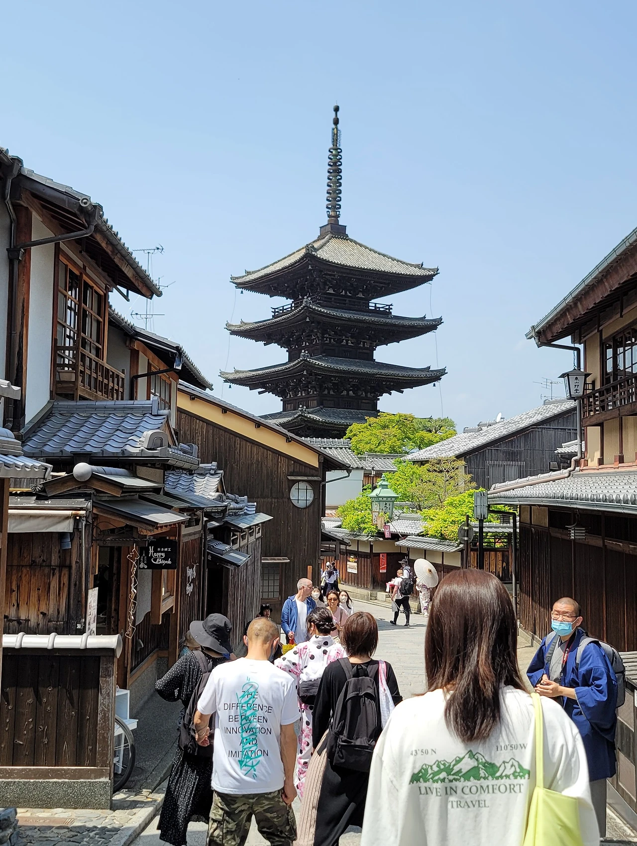 그렇게 청수사를 중학생들과 한 바퀴 돌고 니넨자카를 지나 기념품 숍을 구경하며 내려왔다. 청수사부터 아사카 신사까지 이어진 길은 비록 언덕이지만 턱이 없어 휠체어를 타고 여행이 가능했다. 어제 갔던 은각사 쪽도 산길임에도 언덕이지만 휠체어가 가능했다. 실제로도 휠체어를 탄 장애인이나 노인분들이 산책을 하고 계셨다. 이런 지점이 세계적 관광지의 조건인가? 싶었다. 누구나 차별 없이 볼 수 있는 곳. 메모. 중요.