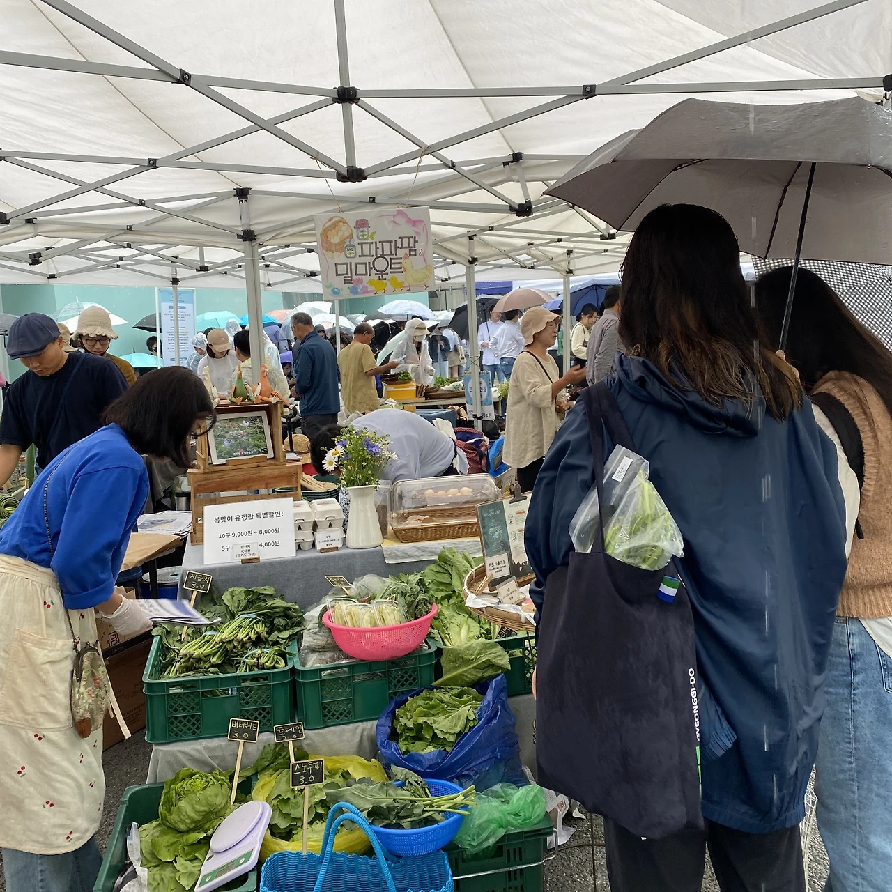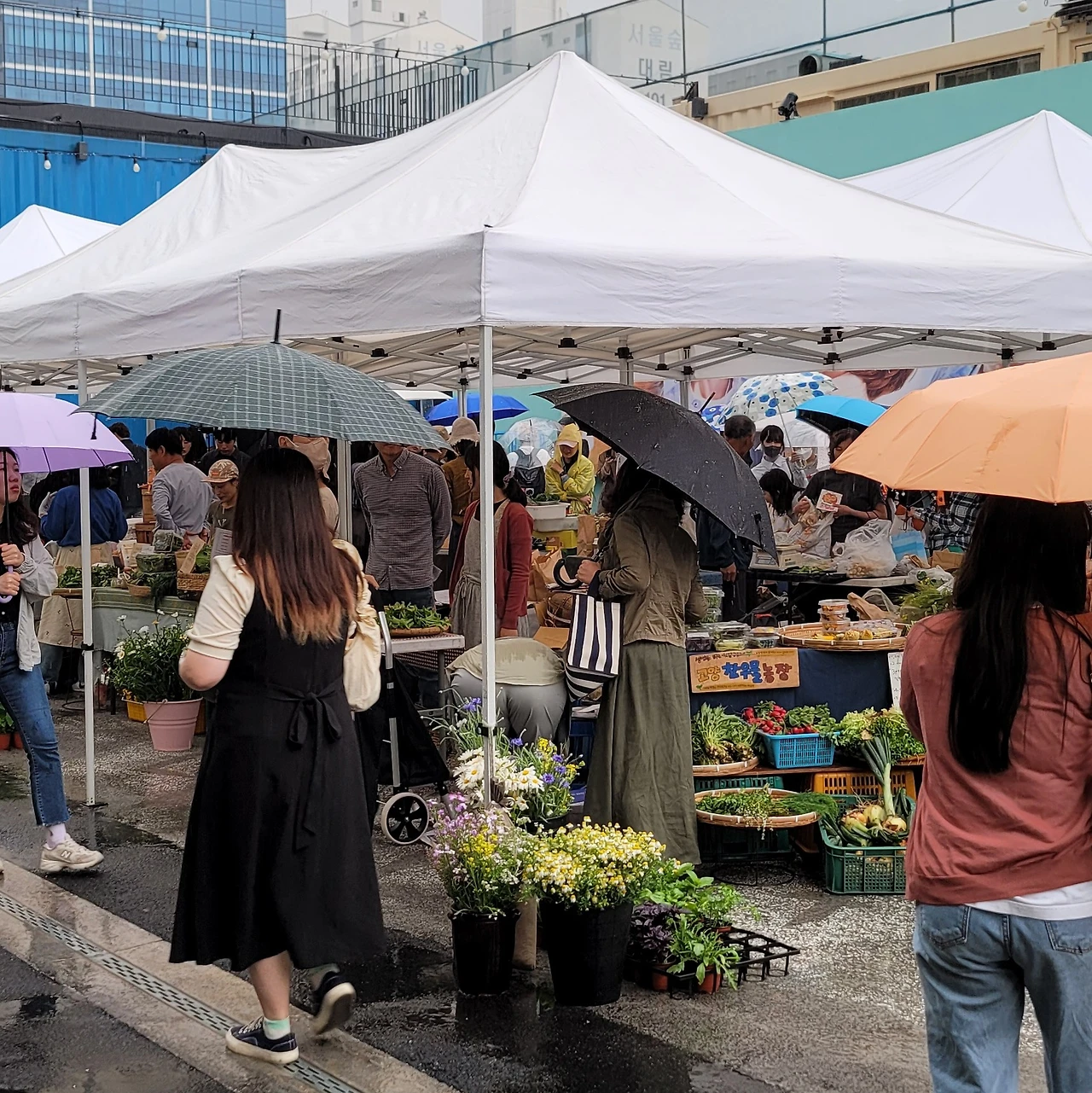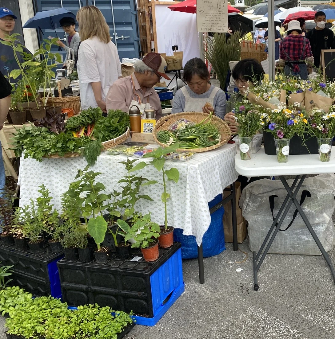 그런데 하필 이날도 비 예보가 있어 가기 싫은 마음이 1000%였는데 마르쉐는 우천에도 운영한다기에 꾹 참고 무거운 다리를 질질 끌고 다녀왔다. 사실 호스트가 뻥 낼수도 없으니까. 심지어 다리가 너무 무거워서 늦을까 봐 그리고 지하철을 항상 잘못 타니까 일찍이 나갔다.