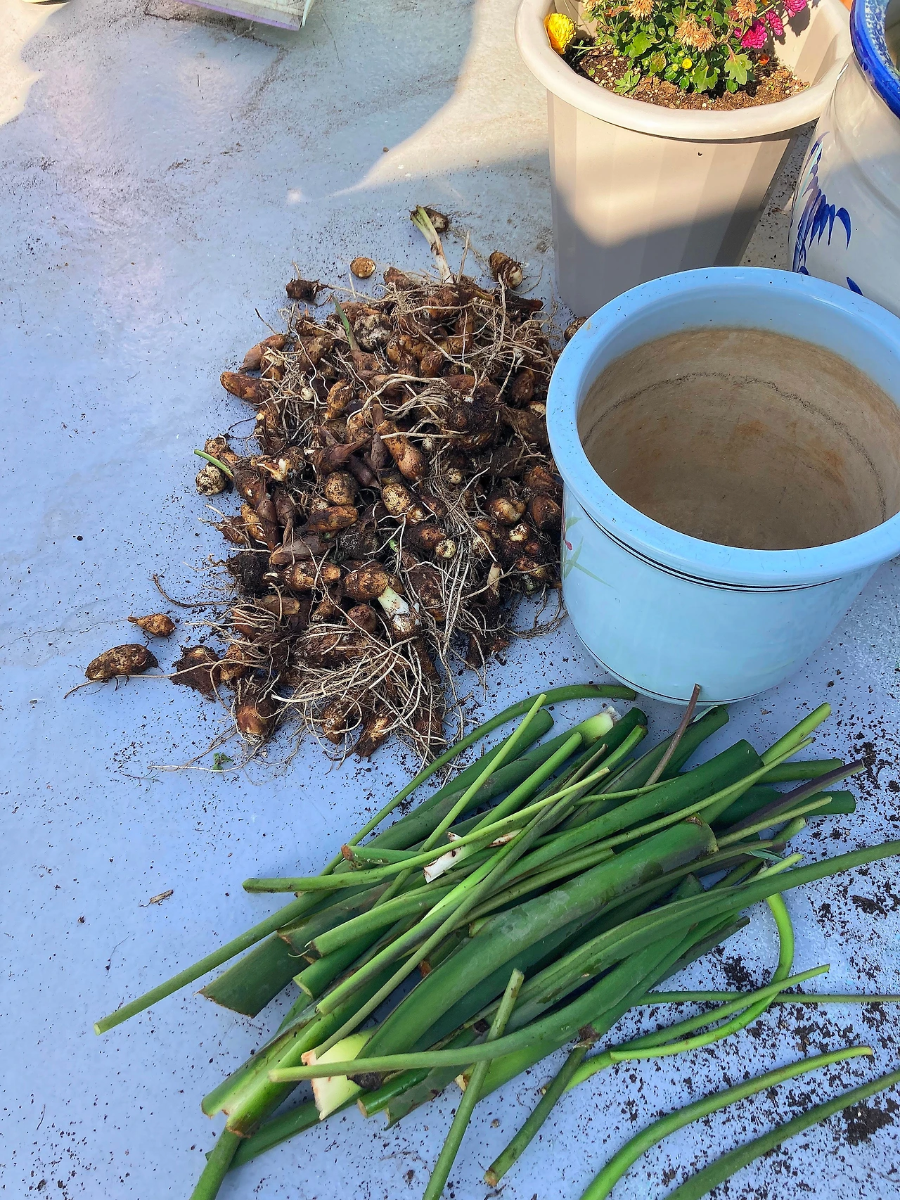 음식물 퇴비가 완성되어 실험해 볼 겸 부추와 상추등 작물에 비료로 주었다. 그리고 대망의 토란을 캐기로 했는데 역시 뿌리가 어마무시하다. 토란을 뽑고 토란대를 정리해서 멤버들과 나눴는데 다들 먹는 방법을 몰라 어리둥절 안 가져간다. 대부분 나와 가지님이 챙겨 갔다. 하지만 한달이 지나도 토란을 먹지 않았고 결국 기회가 되서 물물교환으로 코코넛커피와 토란 일부를 교환했다. 남은 토란...... 맛있는 레시피 찾아 꼭 먹어봐야겠다.