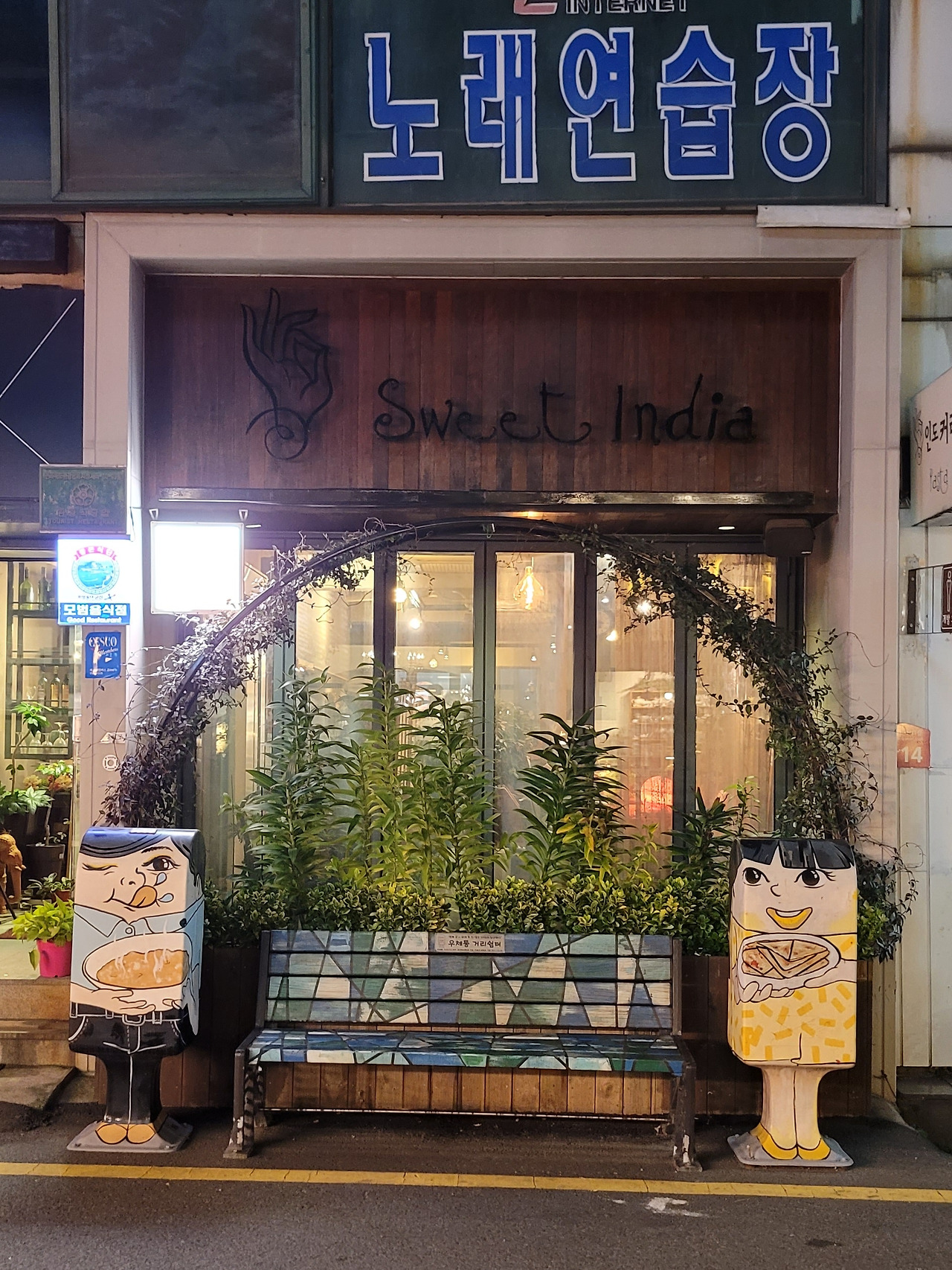 저녁에는 월명동 거리를 돌아다니다 밥을 먹었다. 비건을 지향하는 팀은 #스위트인디아 인도커리를 먹었고 나머지는 곱창을 먹었다. 무상무념으로 들어간 커리집은 맛집이었다. 비록 내 입에 맵긴 했지만 개꿀맛이었다. 평일 저녁 군산 월명동 거리를 안주도 살 겸 돌아다녔다. 거리는 대체로 한산했고 깨끗했다. 쓰레기통마다 얼굴을 그려 넣은 것도 귀여웠다. 행정에서 청소에 돈 좀 썼구나 하면서 안주거리와 술을 사서 숙소로 돌아와 술을 진탕 마셨다.