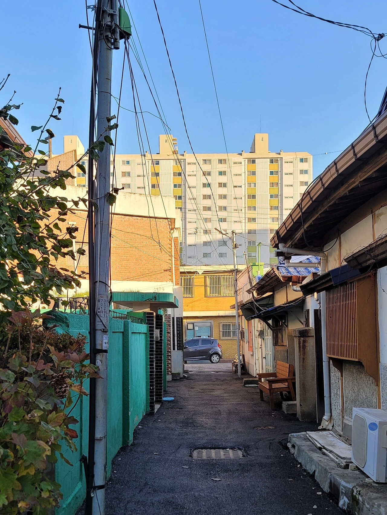 군산 게스트하우스 #소설여행. 겉은 가옥모양에 내부를 모던하게 리모델링한 숙소였다. 옛날 건물이라 넘어짐 주의다. 턱도 있고 밤에 추워지면 테크가 얼기 때문(두 번 넘어짐). 전체적으로 깔끔하고 화장실도 깨끗하고 보일러가 짱짱하게 돌아가서 숙소가 따뜻했다. 주변엔 리모델링된 예쁜 숙소와 빈집이 혼재해 있어 동네가 응답하라 드라마 속 느낌도 나고 풍경에 뜨문뜨문 아파트가 보여 재개발을 앞둔 동네 느낌도 났다.