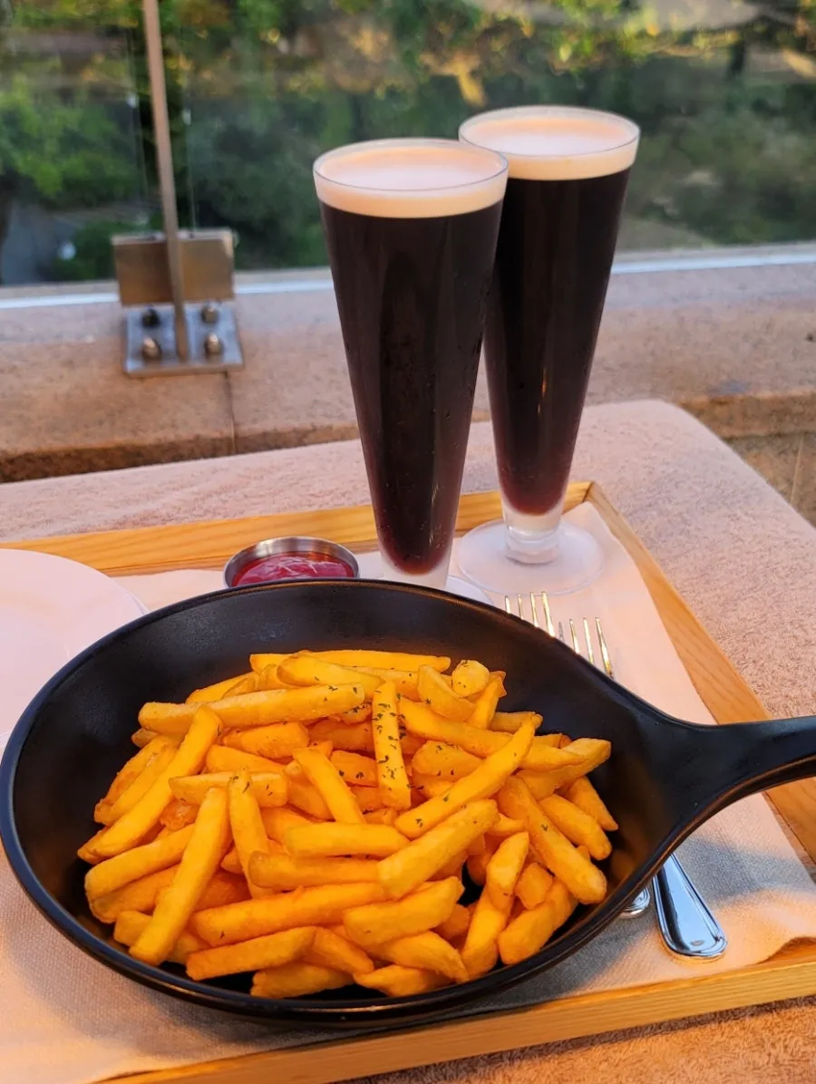 신라호텔에 도착하자마자 물안경 챙겨 수영장으로 나갔다. 대부분 풀 화장하고 사진만 찍는 커플이 많았다. 나만 수영에 진심인 듯 물안경 끼고 수영을 했다. 김원장은 물안경은 부끄럽다며 킥판에 몸을 맡기고 발차기만 했다. 나는 마침 사이드 턴을 배운 뒤라 턴 연습하고 수영장에서 짧게 만난 수친과 물 튀겨가며 잠영, 접영 연습도 했다. 아직 5월이라 물 밖은 추워서 온천물에도 들어갔다 몸 녹으면 다시 수영장 들어가고 불타는 수영을 했다. 그리고 신라호텔 명물인 해물짬뽕도 시켜 먹었다. 6시 이후에 시키면 품절이라 먹을 수 없다 해서 중국인 관광객보다 빠르게 시켜 먹었다. 대게랑 새우 등 해산물에 차돌까지 가득한 1.5인분 양에 밥이 나오는 호텔 짬뽕은 왕맛이었다. 물놀이 직후 먹는 칼칼한 짬뽕이라 무조건 맛있었다. 게다가 제주도 음식 물가가 비싸서 이 양에 이 가격이면 그다지 비싸다는 생각도 들지 않았다.