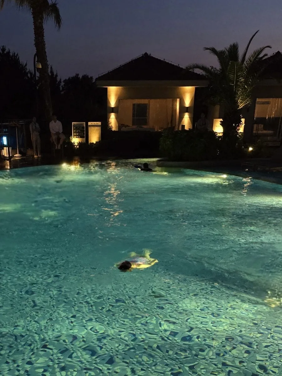 다음 날도 퇴실 전까지 호캉스를 즐겨야 한다며 수영장 오픈 시간 맞춰 나갔다. 함께 간 김원장은 더 했다 8시부터 헬스장 가서 운동하고 수영장에 왔다. 바쁘다 바뻐 호캉스. 해가 쨍쨍한 제주 하늘 아래 뜨뜻한 물이 나오는 호텔 수영장에서 눈뽕 맞아가며 신나게 물장구를 쳤다.