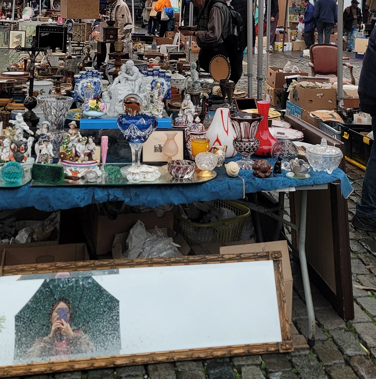 가는 길에 벼룩시장이 열려있었다. 비의 유무는 상관없다는 듯 옷을 밖에서 널어놓고 팔기도 하고 꽤나 사람이 많았고 센세이션 했다. 유럽의 벼룩시장은 온갖 쓰레기 수준의 제품도 많아 잘 골라야 할 듯. 이것저것 잡동사니인지 쓰레기인지를 구경하고 근처에 관광지라고 표기된 법원과 관람차 등을 보고 다시 목적지인 르네 마그리트 미술관으로 향했다.