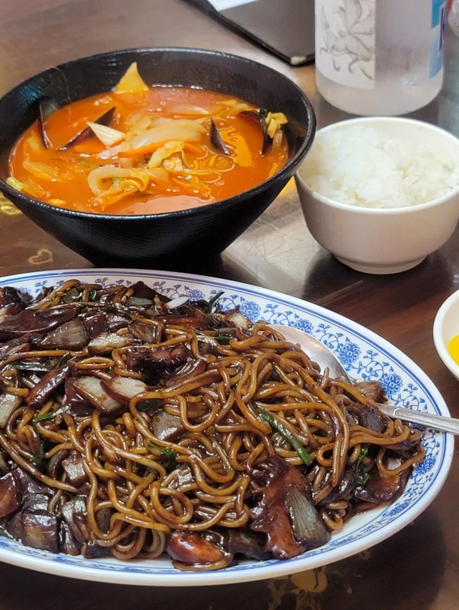 여기서도 P들의 향연이 이어지는데 가지님이 점심 추천으로 친구들에게 리스트 받아놓고 김치찌개 맛집이 있다며 그곳을 찾다가 길을 잃었는데 근처에 냉짬뽕 맛집이 있어 그곳을 가자고 해서 갔는데 냉짬뽕이 어제까지 팔고 시즌 판매를 종료했다고 결국 먹지를 못했다. 제발 아무거나 먹어달라고 하여 클래식하게 쟁반짜장과 온짬뽕 시켜 먹었고 결론 엄청 맛있었다.