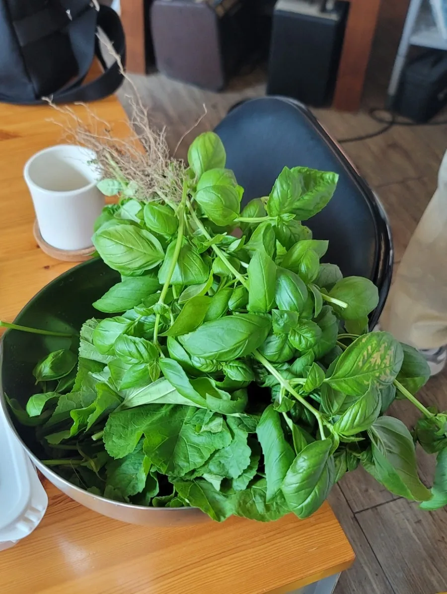 방치한 옥상엔 여름에 뿌려둔 바질 씨가 자연 발아했고 토종 아욱이 매년 씨가 떨어지고 자란다. 날이 추워질 터이니 바질은 뿌리째 싹 뽑았고 키가 커버린 아욱은 잎만 뜯어 나눠가져갔다.