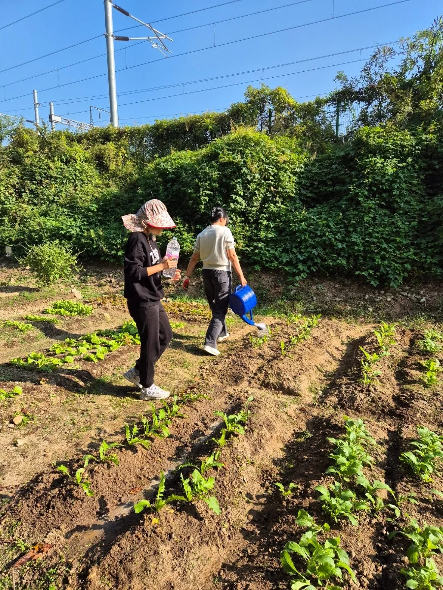 힘든 시기는 다 끝나고 배추와 무가 자라기를 기다린다. 이날은 함께 모여 액비도 주고 오전부터 벌레를 잡았다.