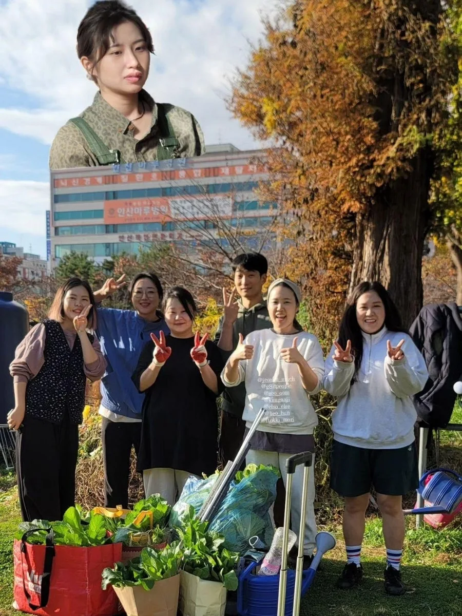 오전 9시에 밭에 모여 수확을 했다. 허접한 모종을 심고 남들보다 배추를 늦게 심어 걱정했는데 생각보다 작물이 잘 자라주었다. 무는 열무 수준으로 자랐는데 주변 밭 소식을 여쭈어보니 무가 다들 덜 자랐다고 했다. 우리가 못 키운 것은 아닌 걸로. 지각해서 수확을 놓친 지현님은 내가 단체사진에 합성으로 넣어줬다.