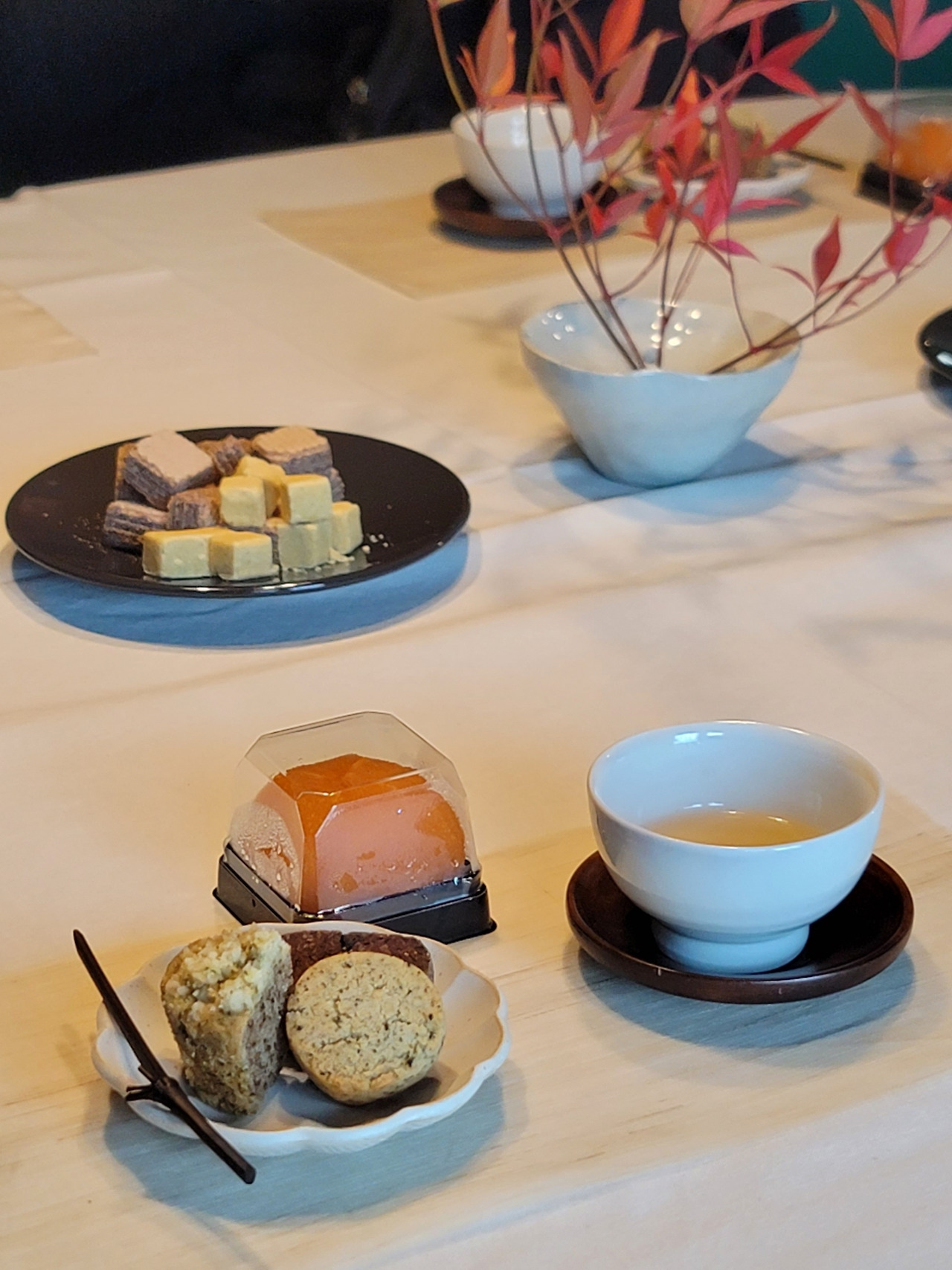 애니웨이 호지차는 굉장히 달달하고 구수했다. 심지어 들깨향이 났다. 강배전으로 가면 더 달고 구수하며 점점 참깨향으로 간다. 달달한 걸 먹은 것도 아닌데 호지차가 입에 달달함을 휩싸이게 해 디저트를 먹을 수밖에 없었다. 그렇게 차먹 빵먹 하기 최적화의 차다. 대신 내포성이 약해 여러 번 우려먹는 차로는 어려우나 카페인이 거의 없어 밤에 마시기 좋은 차였다. 호스트인 차린님은 호지차가 다른 차와 섞여도 맛있다면서 혜림농원의 호지와 홍차가 섞인 차도 우려 주셨다. 커피가 땡기지 않을 정도의 호지홍차. 이 날 나의 베스트 차였다.
