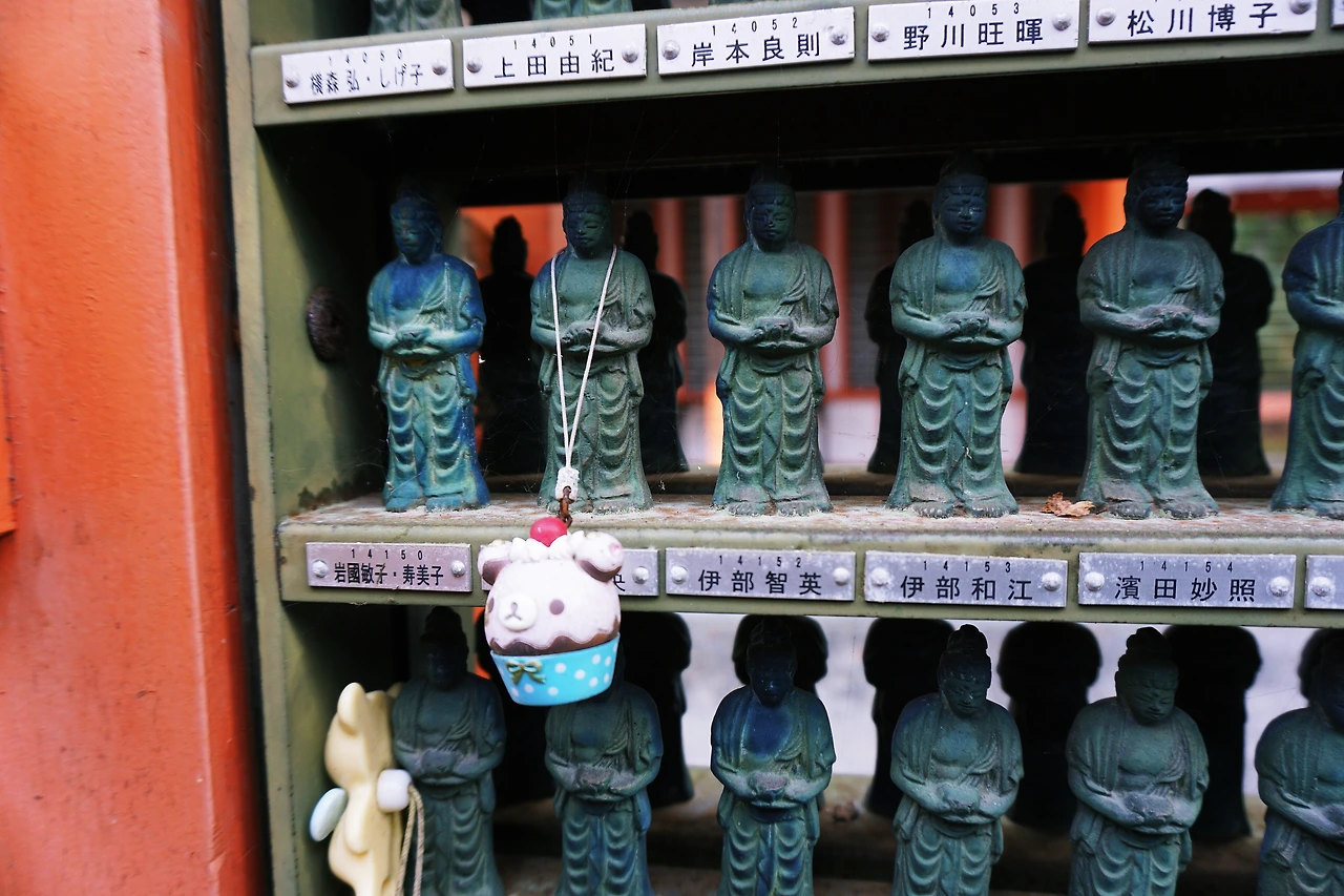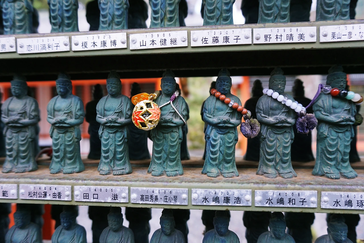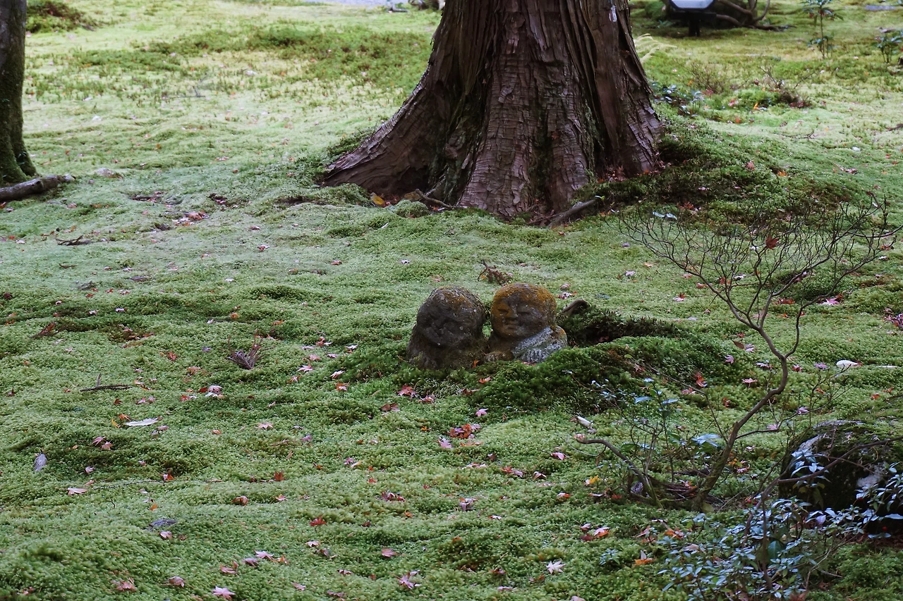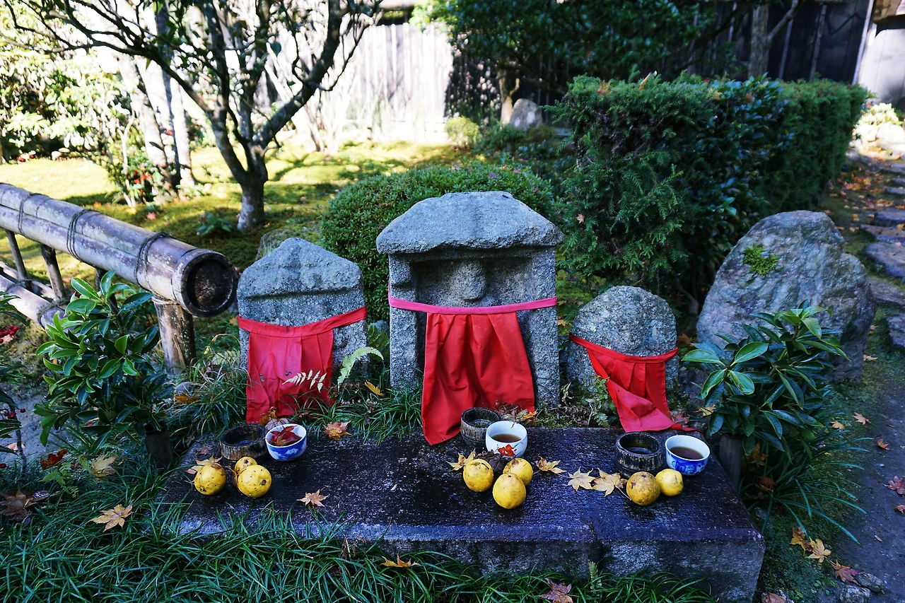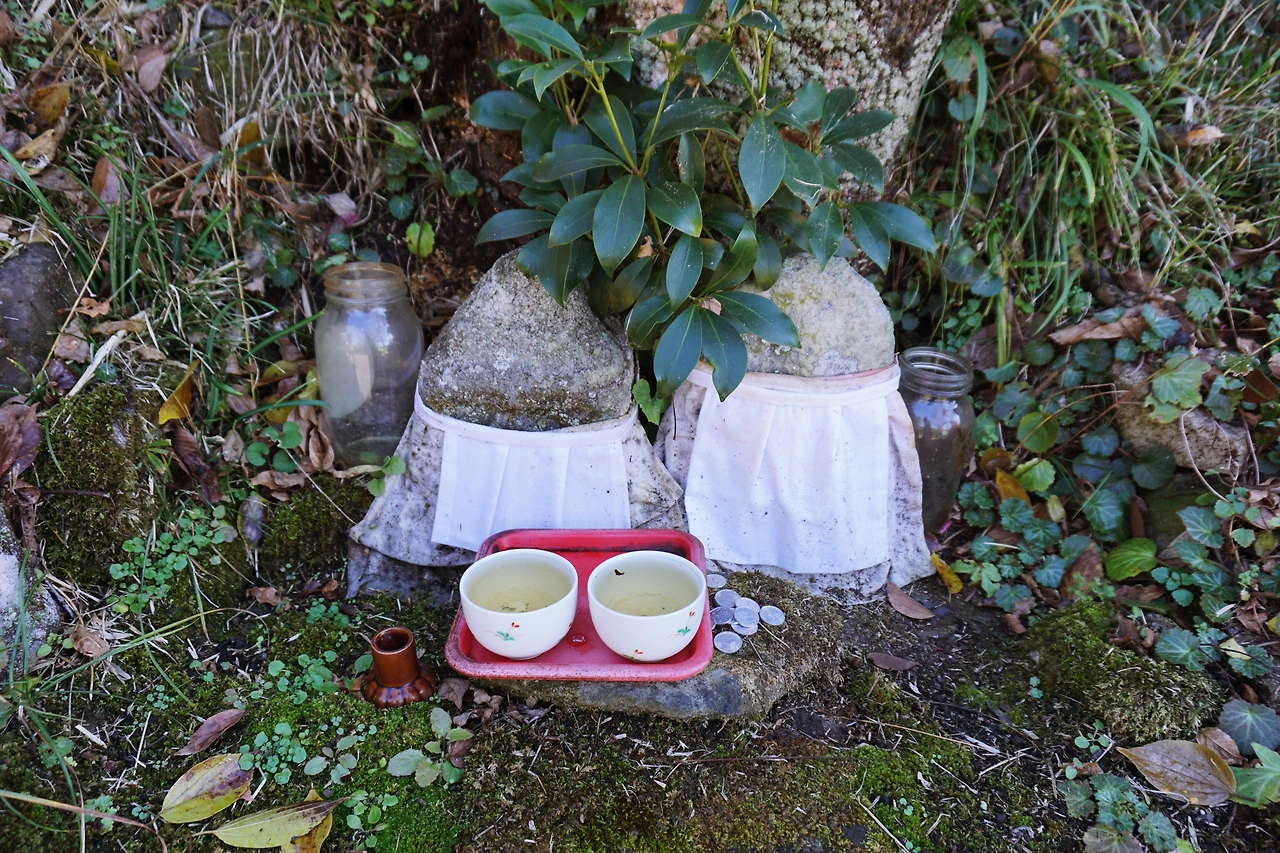 교토 사찰에 얼굴이 미세하게 박힌 조그마한 돌 조각상에 옷을 입히고 차를 대접하는 모습을 종종 볼 수 있다. 너무 귀엽다.