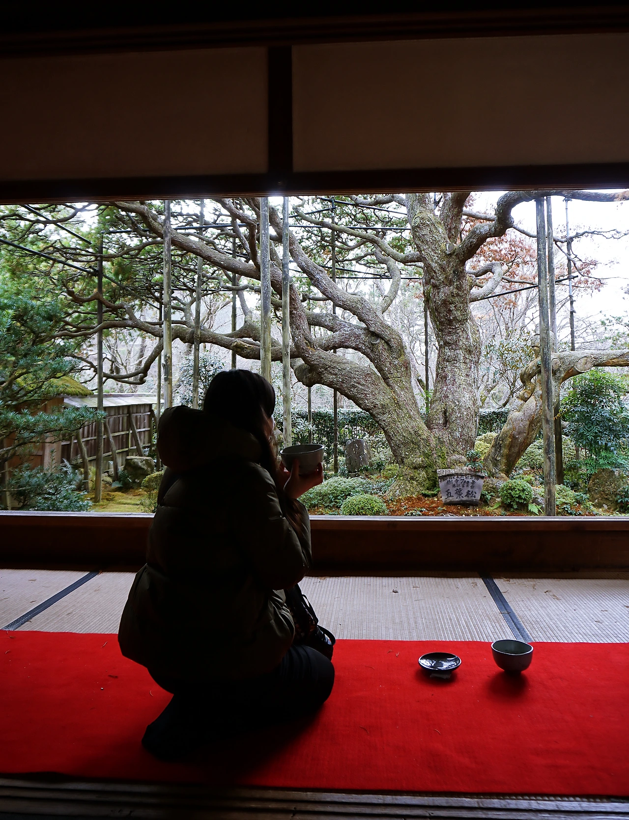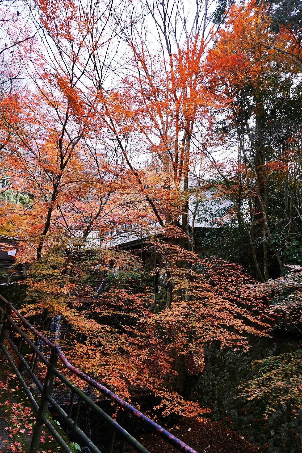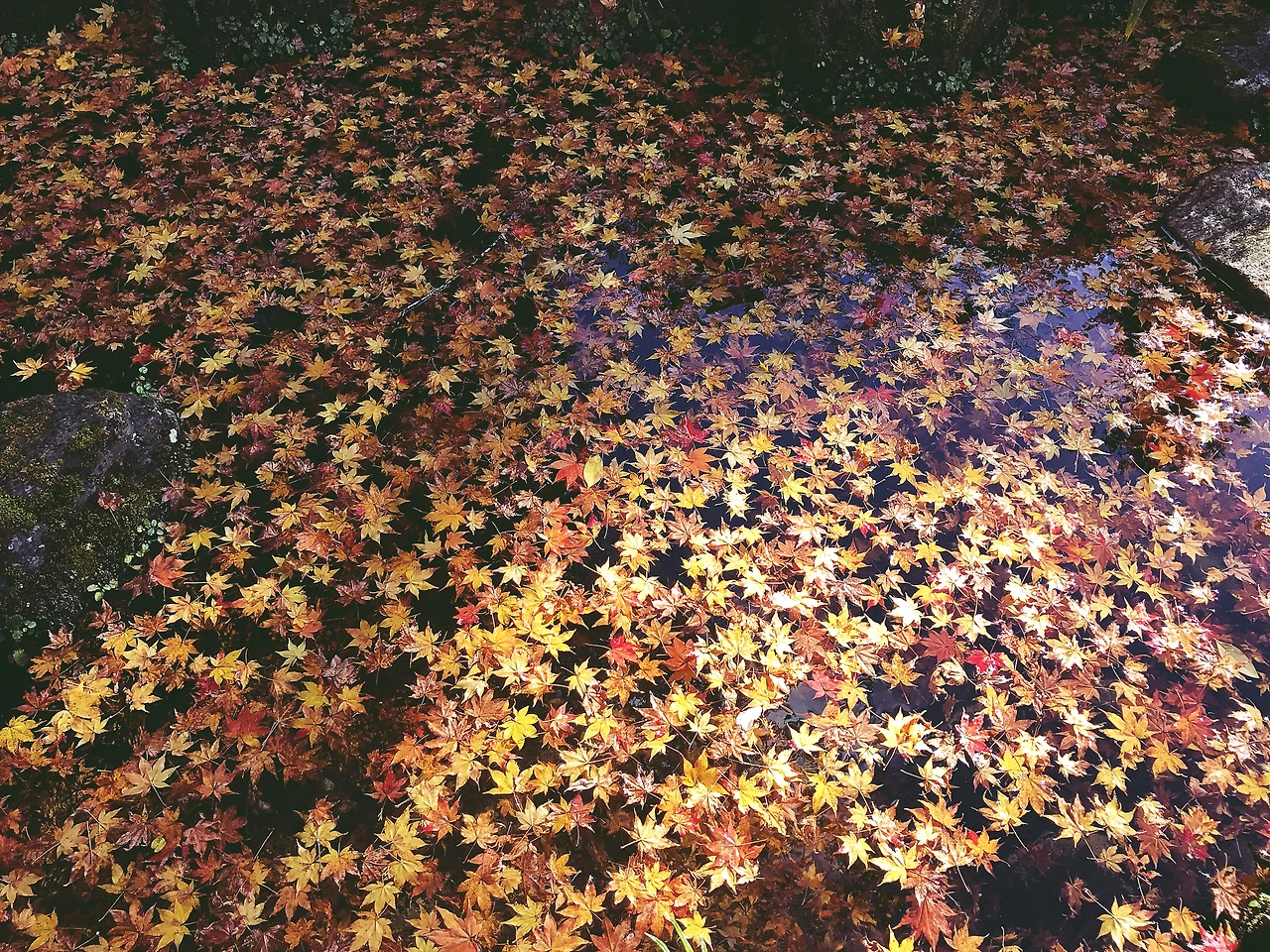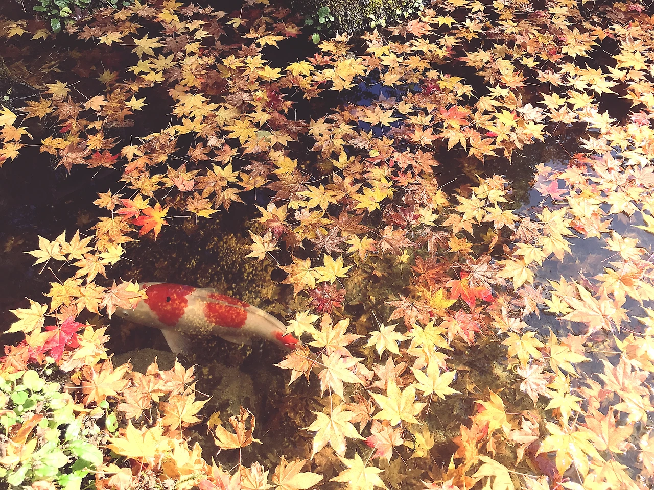 호센인 입구에도 깔끔하게 옷 입은 미니미 신들이 귤을 드시며 나를 맞이해주었다. 이어진 빨간 단풍이 연못에 떠다니는 풍경. 이런 많은 단풍은 처음이었다. 물이 흐르는 연못을 따라가니 단풍이 빨갛게 얼룩져있다. 빨간 물 안에서 잉어는 수영을 한다. 그것을 바라보던 나는 아무 생각이 없어진다. 그저 따뜻하고 싶을 뿐.