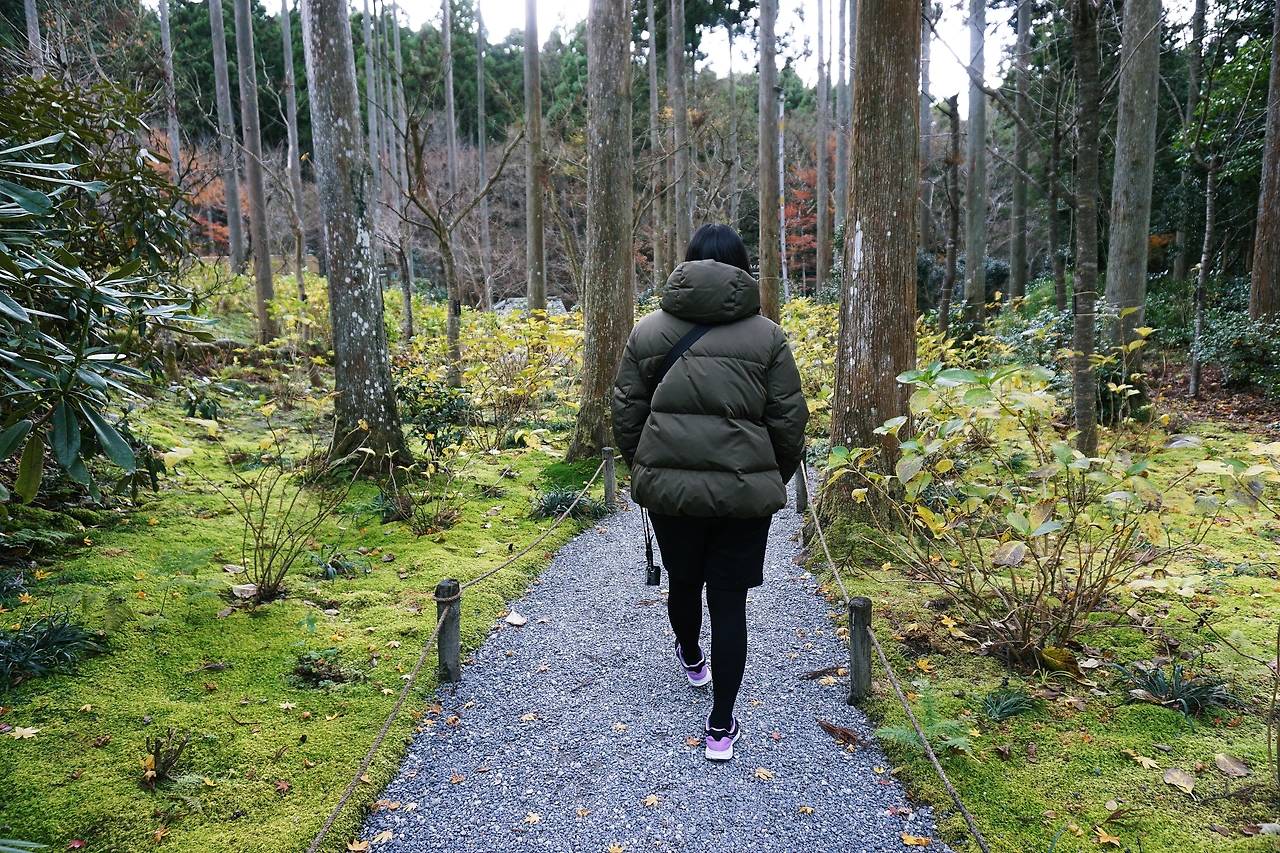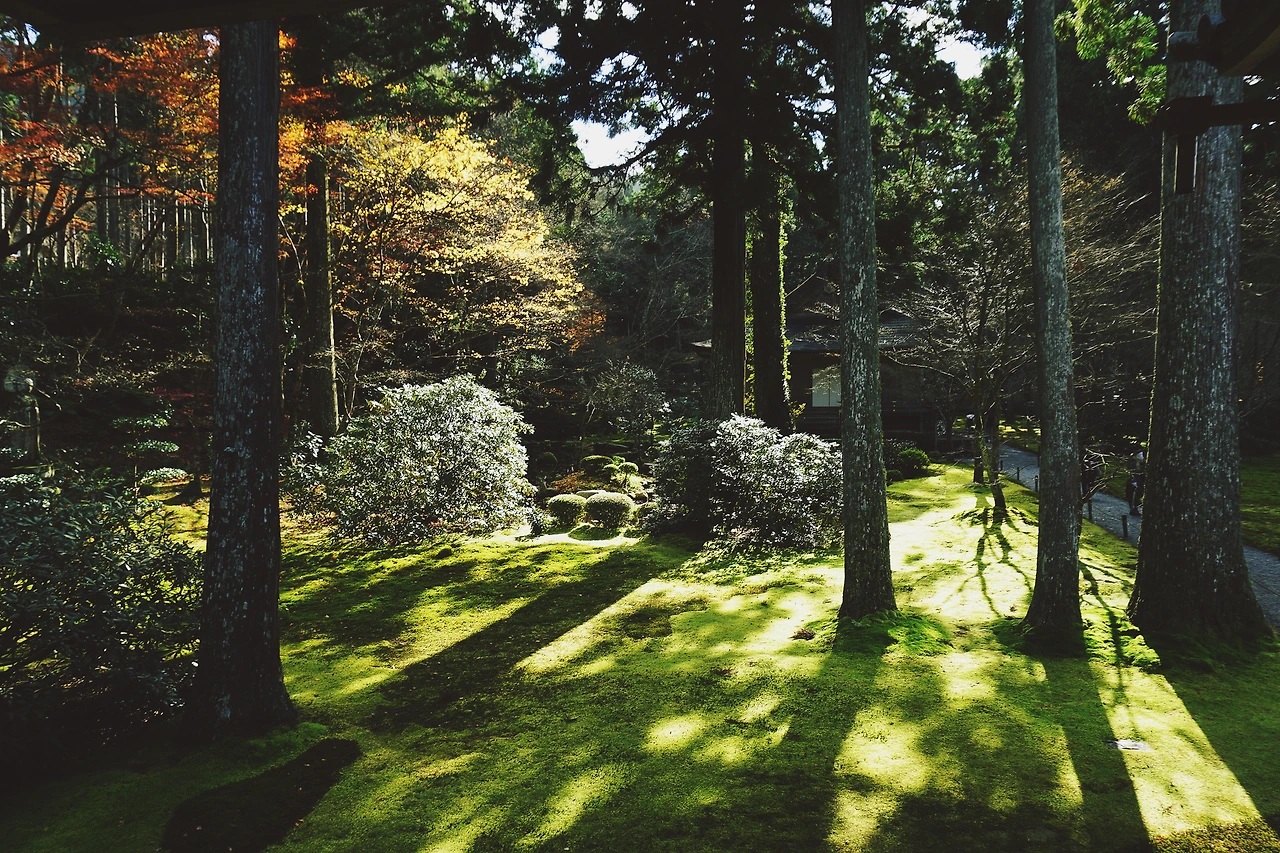 호센인에서 영적인 대화에 실패한 뒤 산젠인에 들렀다. 꽤 큰 절이였다. 빈 나무들이 많은 것 보니 벚꽃이 피면 예쁠 사찰이었다. 바닥의 초록이들은 잔디가 아니라 전부 이끼였다. 가까이서 보면 좀 징그럽다. 사찰 주위엔 브로콜리처럼 생긴 키가 굉장히 크고 마른나무들이 빼곡하게 있었다.