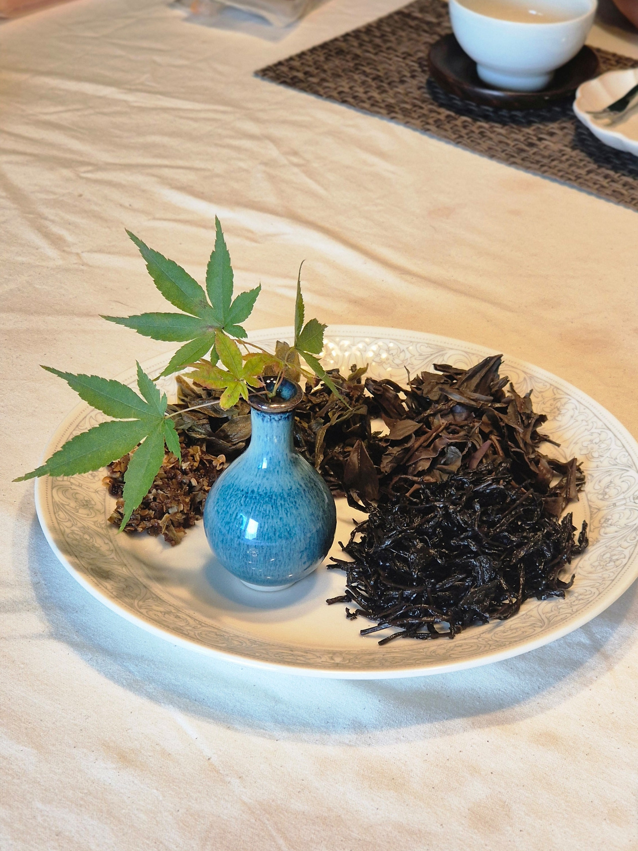 백로는 가을기운이 다가와 이슬이 맺히는 절기인데... 이 날 찻자리는 더웠다. 절기다회 백로에선 대용차 2가지와 중국 홍차, 한국 흑차를 마셔보았다. 작두콩차나 감잎차는 워낙 취향이라 잘 마셨다. 작두콩차는 매우 고소한데 나처럼 몸에 찬 기운이 있는 사람은 많이 마시면 설사할 수 있으니 조심!(내 몸에 실험함) 감잎차는 3년째 마시는 중인데 코끝 발끝 시릴 때 마시면 정말 맛있다. 다들 짭쪼리한 과자 ex) 고래밥 향이 난다고 한다. 난 짠맛 잘 먹어서 고래밥까지 모르겠고 감칠맛 돌고 달다구리 하다. 할매띄움차에서는 호불호가 있었다. 다회 멤버들도 좋고 싫음이 갈릴정도? 나는 잘 마시지 못했다고 한다.