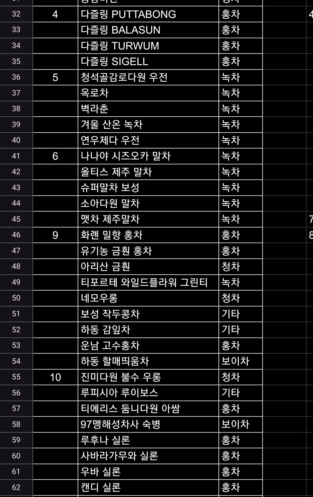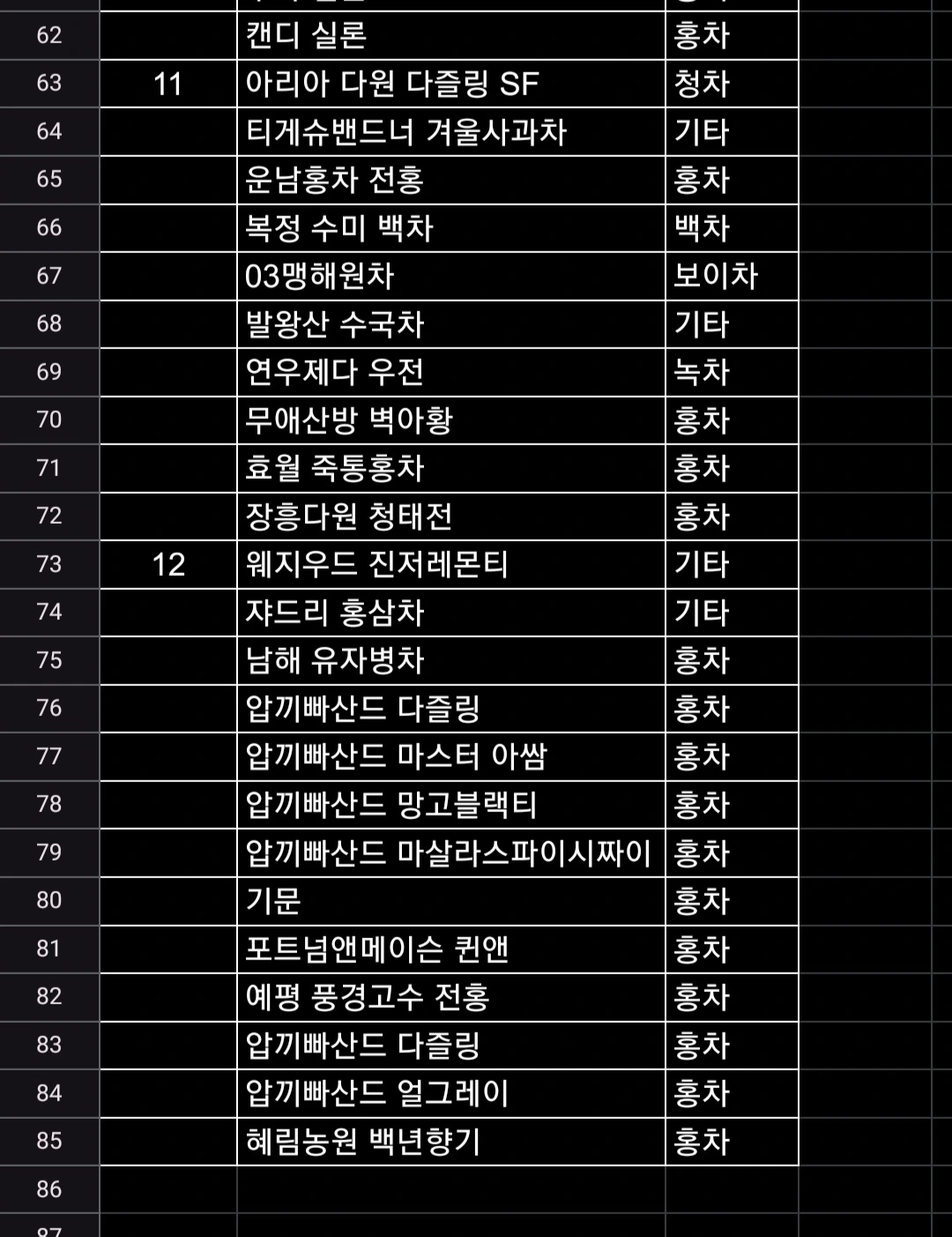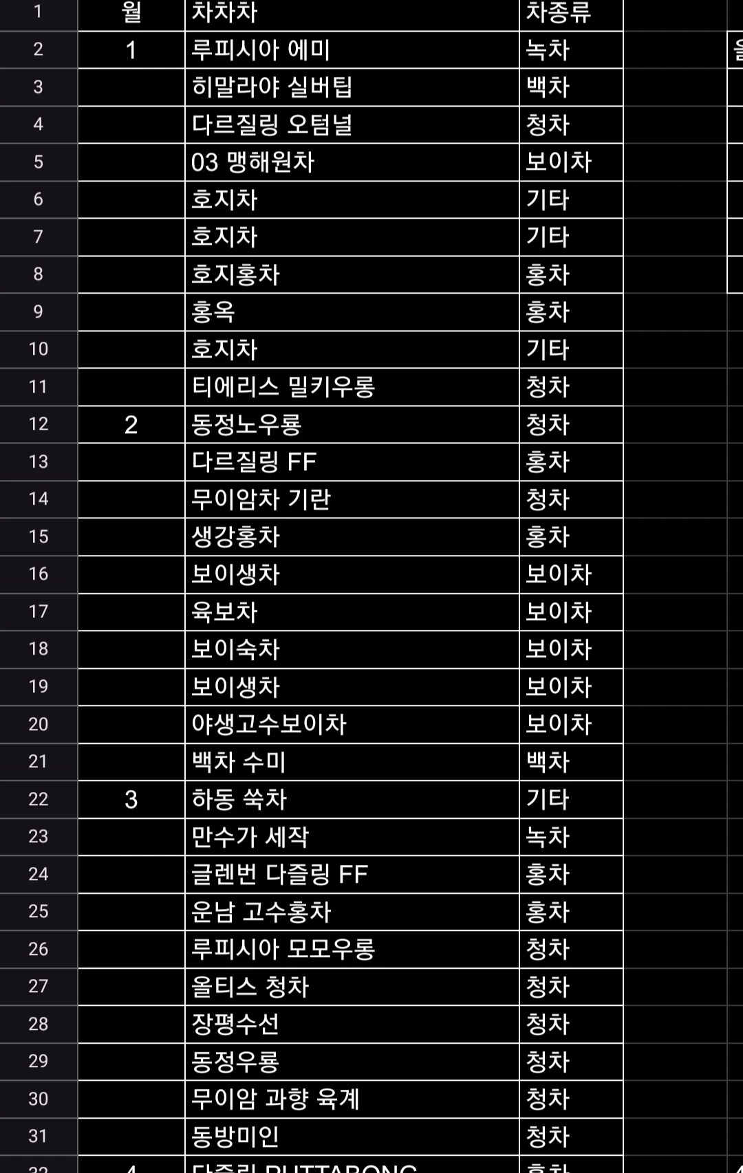 1년 동안 찻자리에서 마신 차 목록 정리한 거 올리고 2025년 찻자리 마무리! 내년에도 즐거운 과음^^*