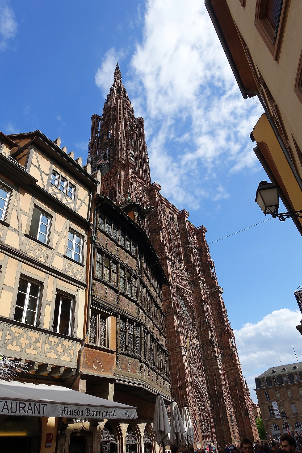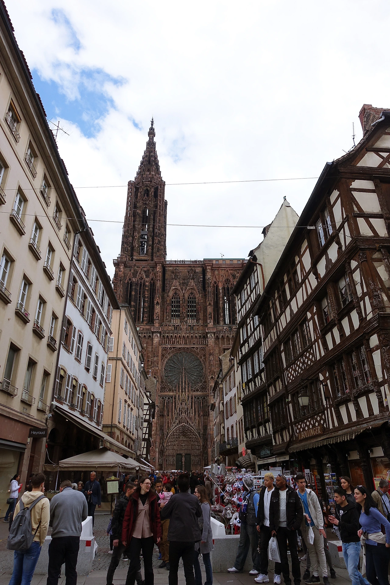 스트라스부르는 독일에서 가까운 동네라 건물이 동유럽 느낌이란다. 아기자기하고 알록달록한 건물이 만화에 나오는 집 같았다. 그리고 동네 어디서든 붉은색의 성당이 보인다. 시선강탈 성당은 붉은 사암으로 만들어졌다. 멋스럽게 녹이 든 철색같기도 하고 커다랗고 화려했다.