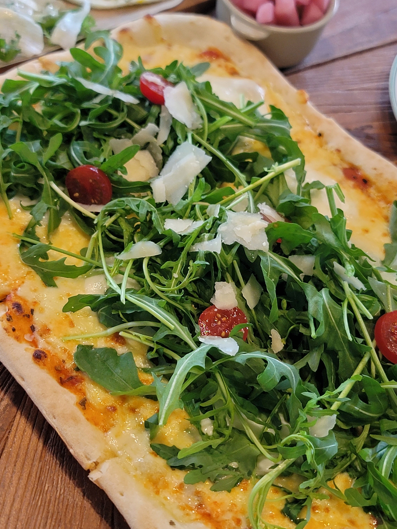 우린 저녁에 주류백화점에서 산 와인과 써니네 집에 있던 와인 2병까지 탈탈 털어먹었다. 그리고 당연하게도 늦게 일어났다. 퉁퉁 뿔은 몸으로 피자 해장을 하기로 했다. 비마이가든에서 루꼴라 밭을 털어온 듯한 양의 루꼴라가 많은 피자를 먹었다. 내 추구미인 식물인테리어가 너~~~~~무 예쁜 카페였고 바로 앞은 남한강이 흘렀고 햇살이 좋은 날이었다.
