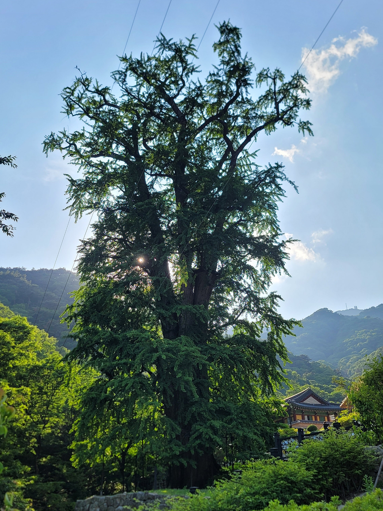 잠시 휴식 후 천살 먹은 은행나무가 유명한 용문사에 방문했다. 양평에 꽤나 자주 왔는데 용문사는 처음이었다. 차로 구불진 길을 20분 정도 들어가야 주차장이 나오는데 가을시즌에 이 모든 길이 주차장인지 헷갈릴 정도로 관광버스로 꽉 차있다고 한다. 산길 조성이 잘 되어있는 용문사를 20-30분쯤 올라가면 유명한 은행나무가 나온다. 아직 단풍시즌은 아니라 모든 것이 푸릇했다. 푸르른 것을 보니 정신없던 마음이 차분해졌다.