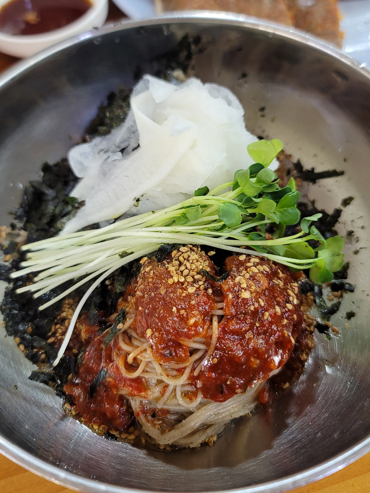 휴식 후 청운면에서 알바하는 수영이를 짧게 방문하고 저녁엔 춘천 주류백화점에 들렀다. 양평역에서 청운면까지 차로 40분이 걸렸다. 양평역에서 춘천도 50분 정도만 걸리는 거리였다. 강원도가 가까운 양평이다. 세계주류마켓엔 술의 종류가 많았다. 행복했지만 가격이 싸진 않았다. 그래도 와인이 먹고 싶어 적당한 데일리 와인 3병을 구매했다. 주류 구매 후 써니 동친이 맛있다고 강추했던 춘천 막국수집에서 저녁을 먹기로 했다. 오늘은 하루 종일 면식이다.