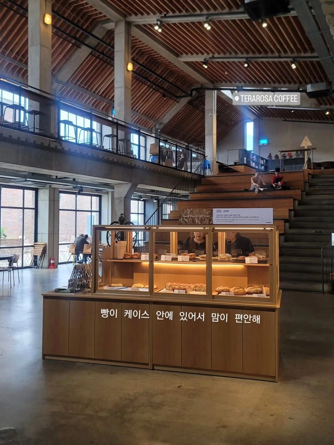 쌀국수집 근처 동네를 산책한 뒤 테라로사 서종점에 후식을 먹으러 들렀다. 테라로사 서종면은 복합공간으로 된 곳이었다. 주변에 산책로가 잘 되어있고 잡다구리 한 거 사기가 좋은 가게들이 있다. 다행히 가격이 비싸서 지갑을 지켰다. 드립커피 한잔과 간단하게 빵을 먹은 뒤 양평역 근처 사는 써니네 집에 들러 혈당스파이크를 잠재우기로 했다.