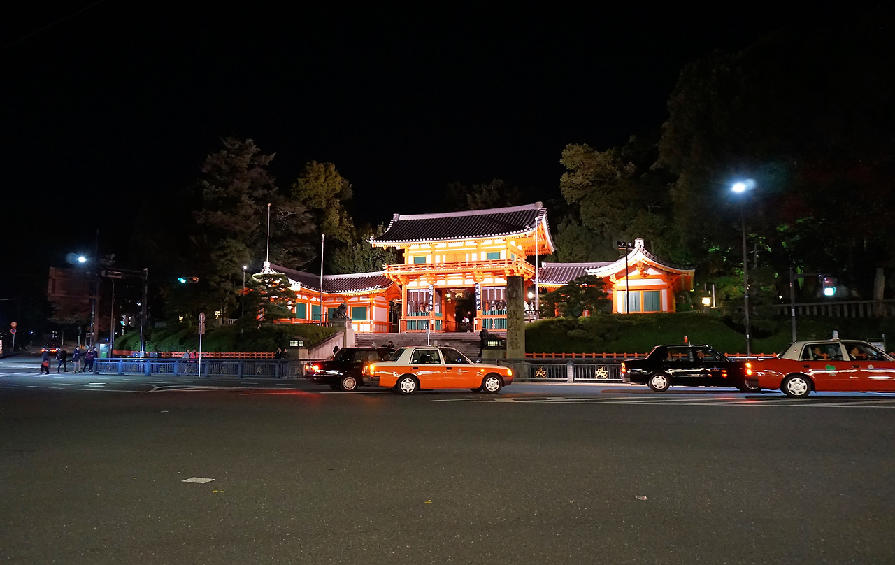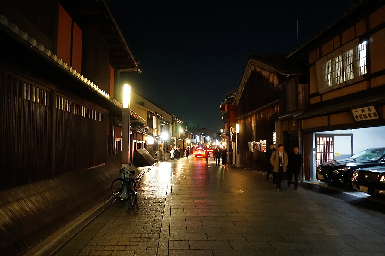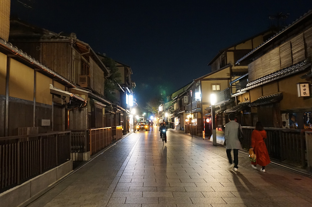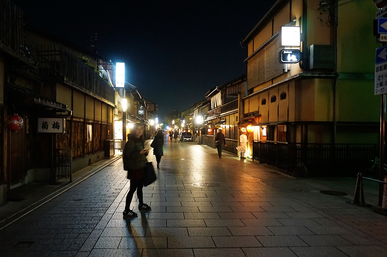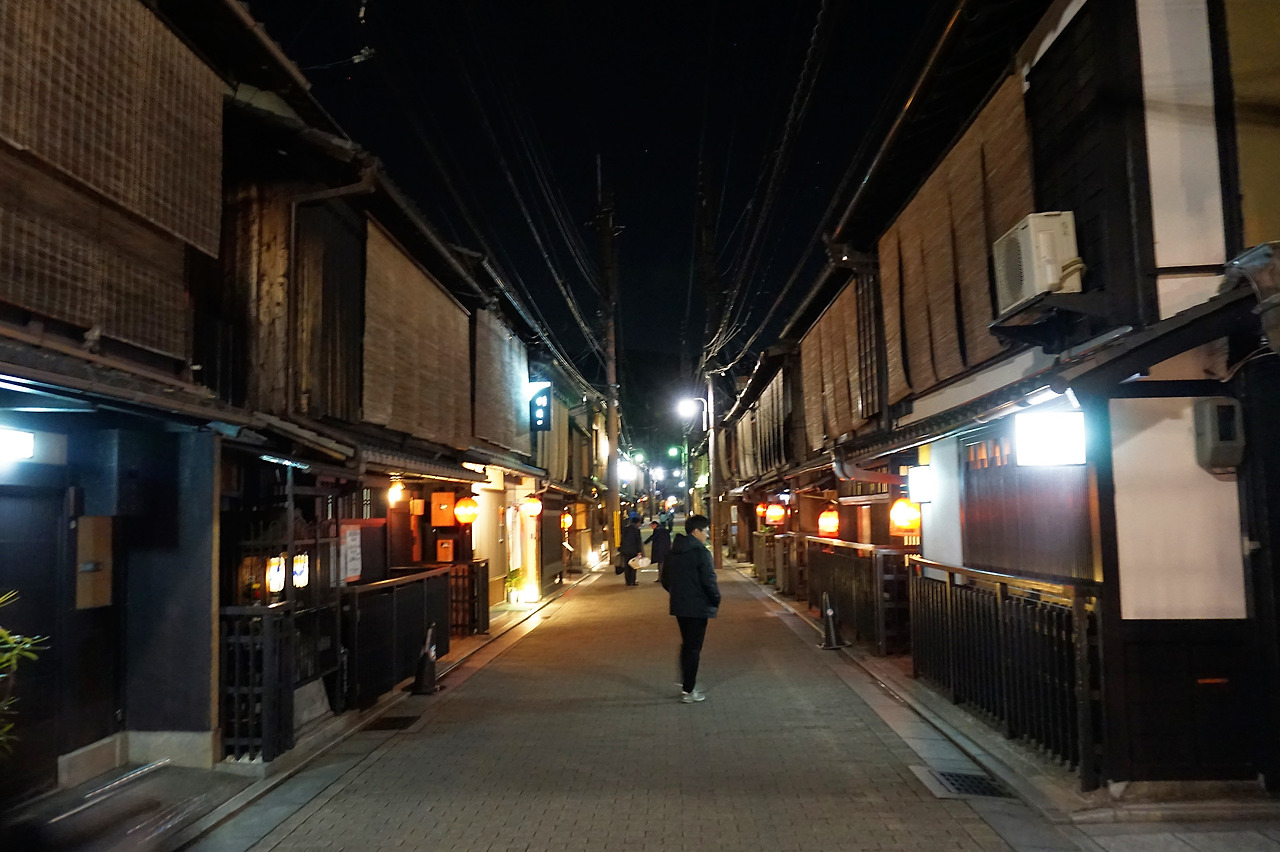 왕고등어 초밥을 먹고 기온거리를 나섰다. 평일이라 가게문이 많이 닫......ㅇ... 아니 자세히 보니 열었지만 은밀하다. 낮에 볼 수 없었던 고급 세단과 손님을 태운 택시들이 가게 곳곳으로 들어간다. 얼굴을 허옇게 분장한 통굽 나막신을 신은 게이샤도 보고 교토에서 가장 많은 업소 여성들을 만난 날이었다.
